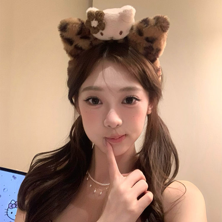 2# leopard print kt plush cat ear face wash hair bands are almost sold out