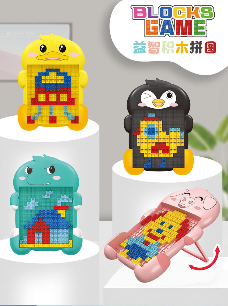 pink three-dimensional building block puzzle