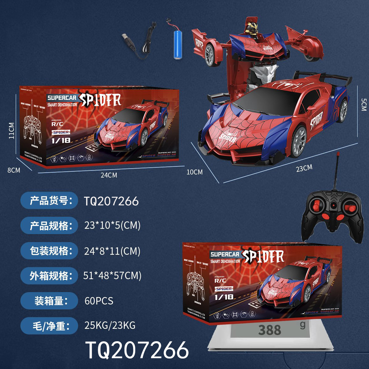 【Product Name】: 1:18 Spider Transforming Car TQ207266
