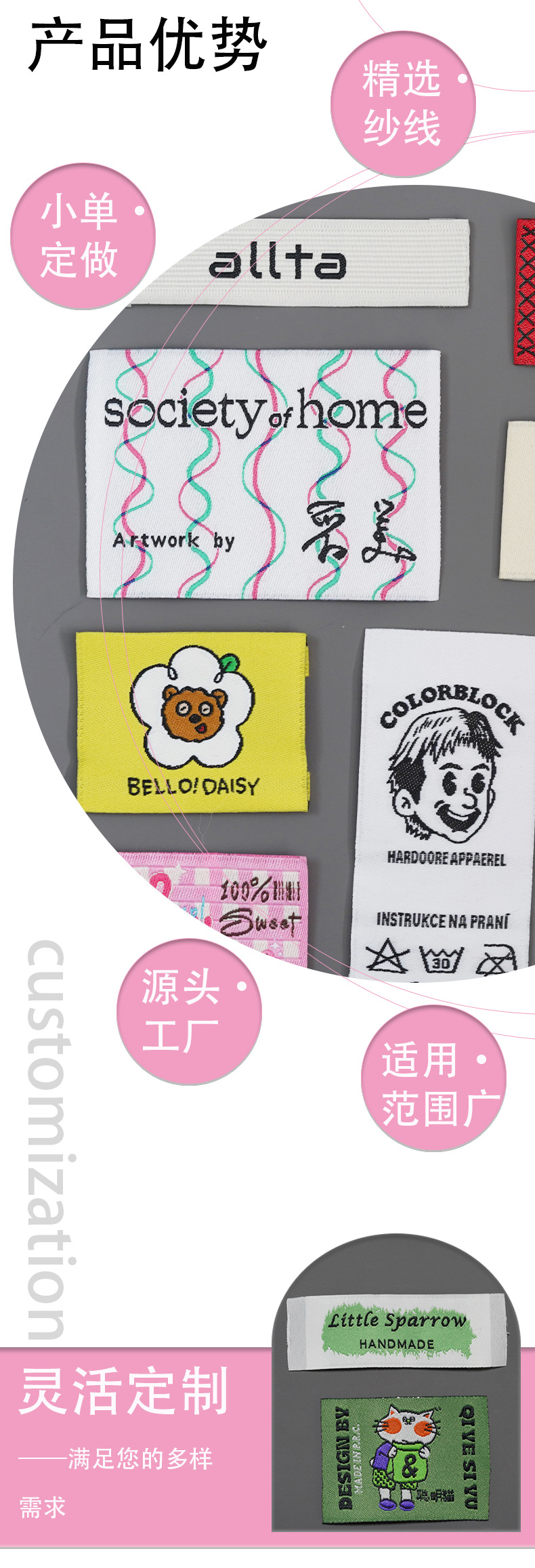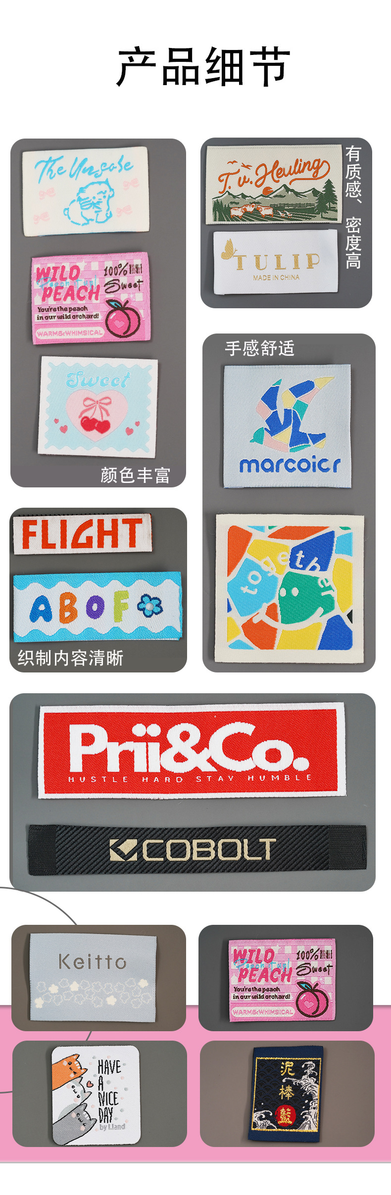 item no.: weaving mark shipping mark collar lable
