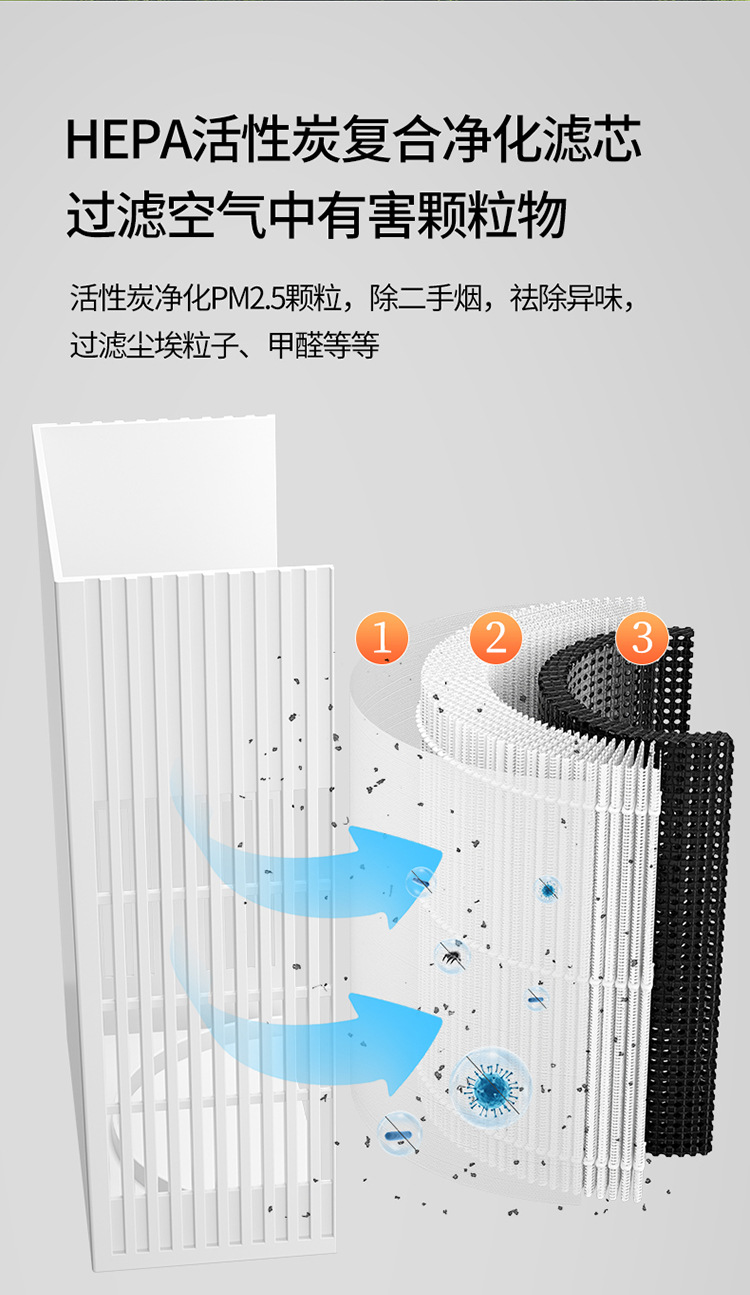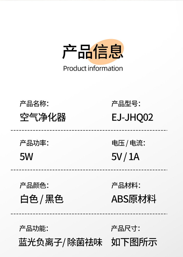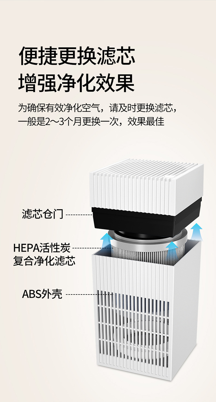 blast volume of the air purifier: 50 cubic meters/hour