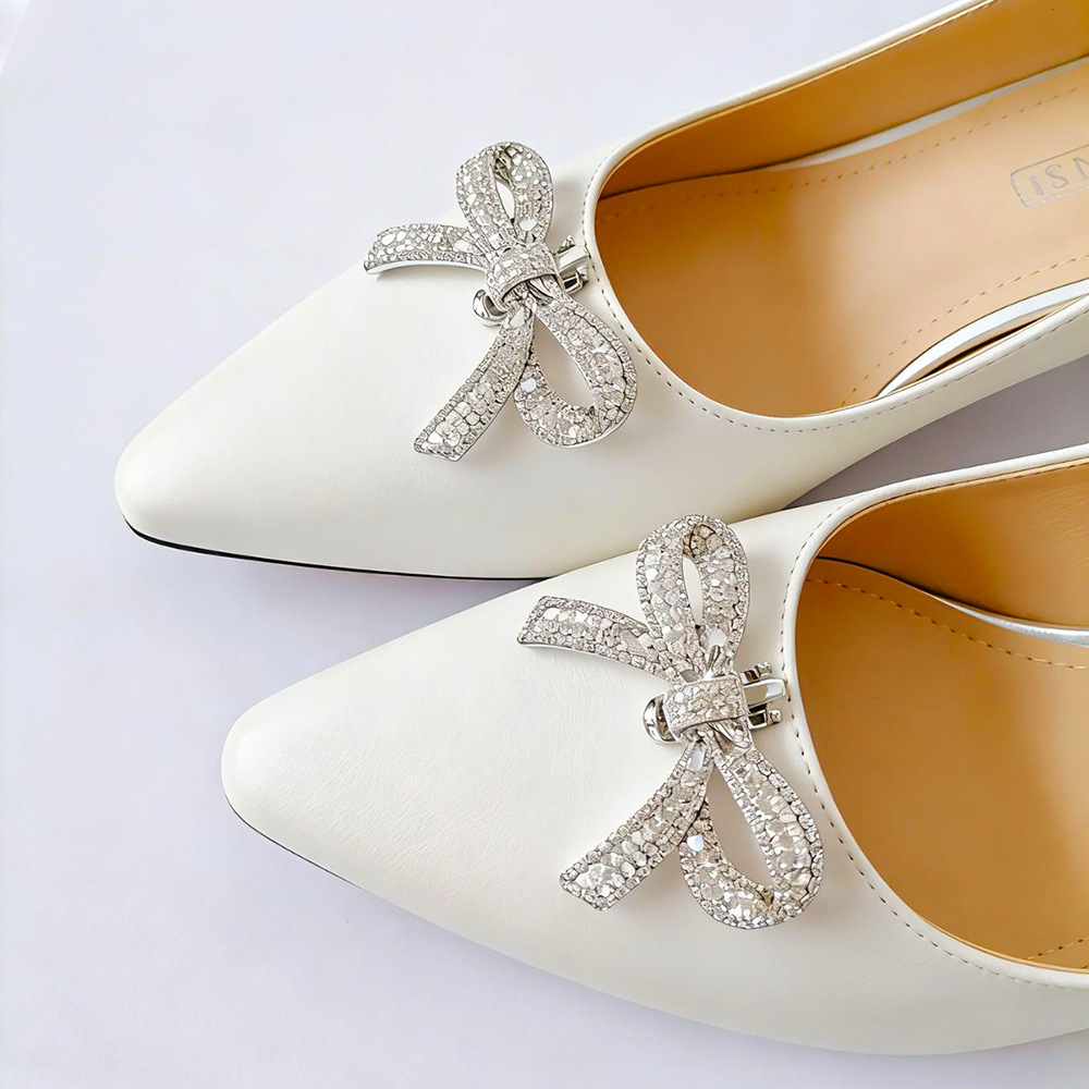 bow-shaped shoe buckle silver