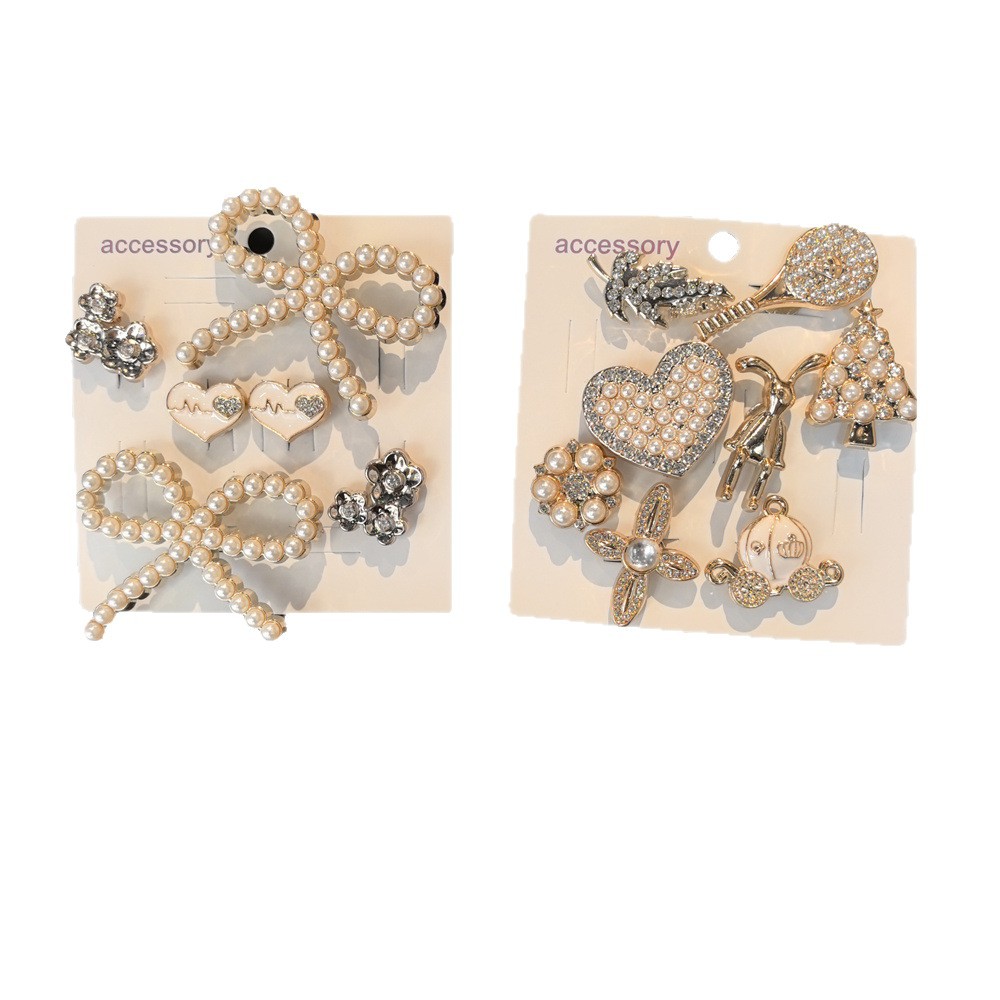 golden pearl bow hole shoes shoe ornament set (card)