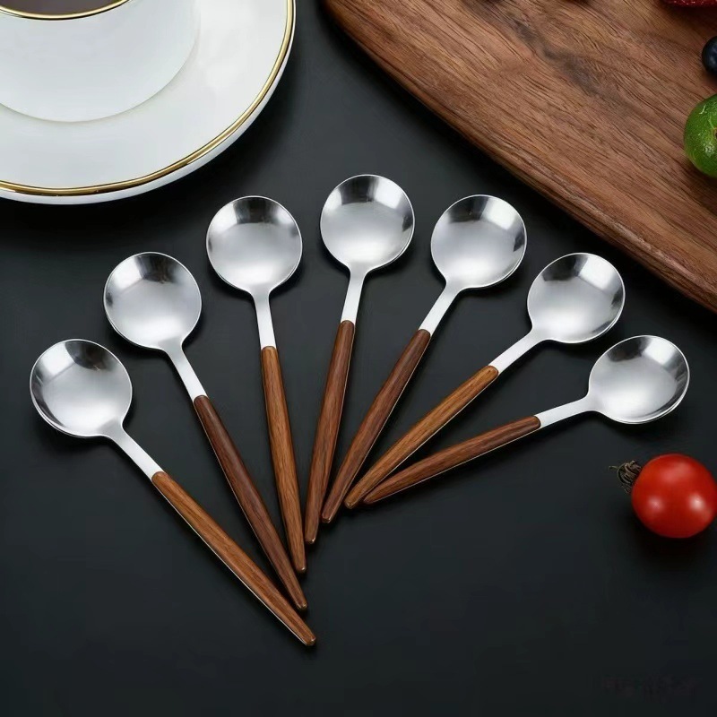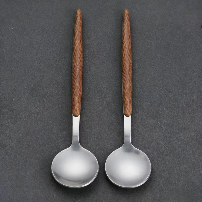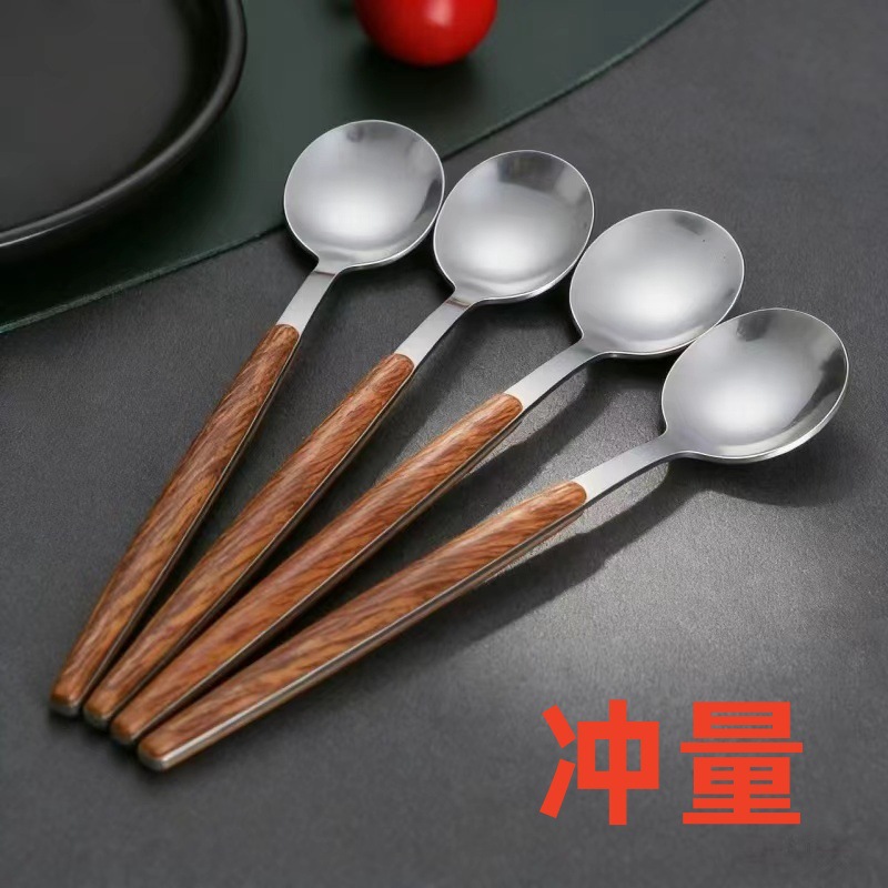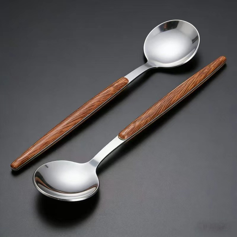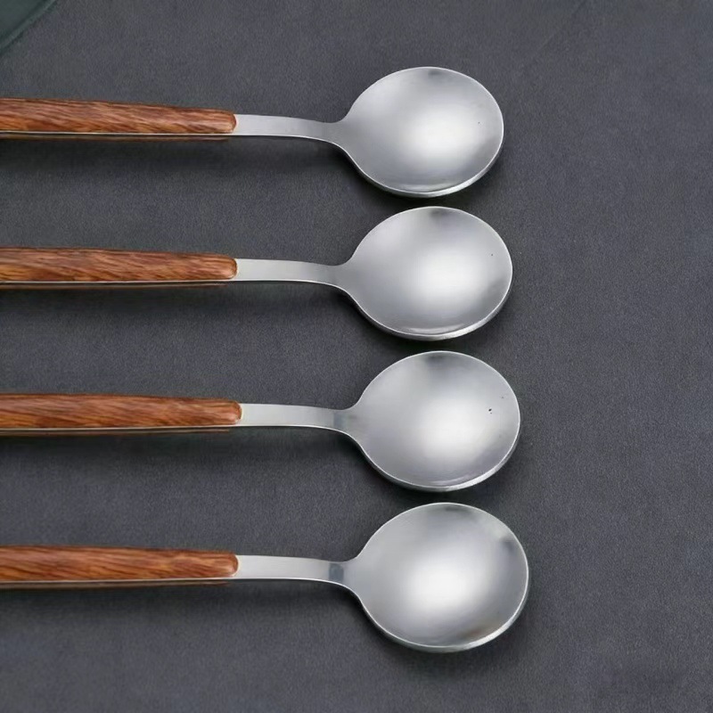 stainless steel wood grain clamp handle dessert spoon