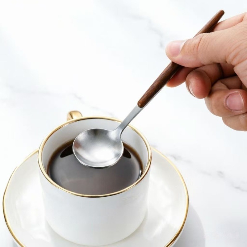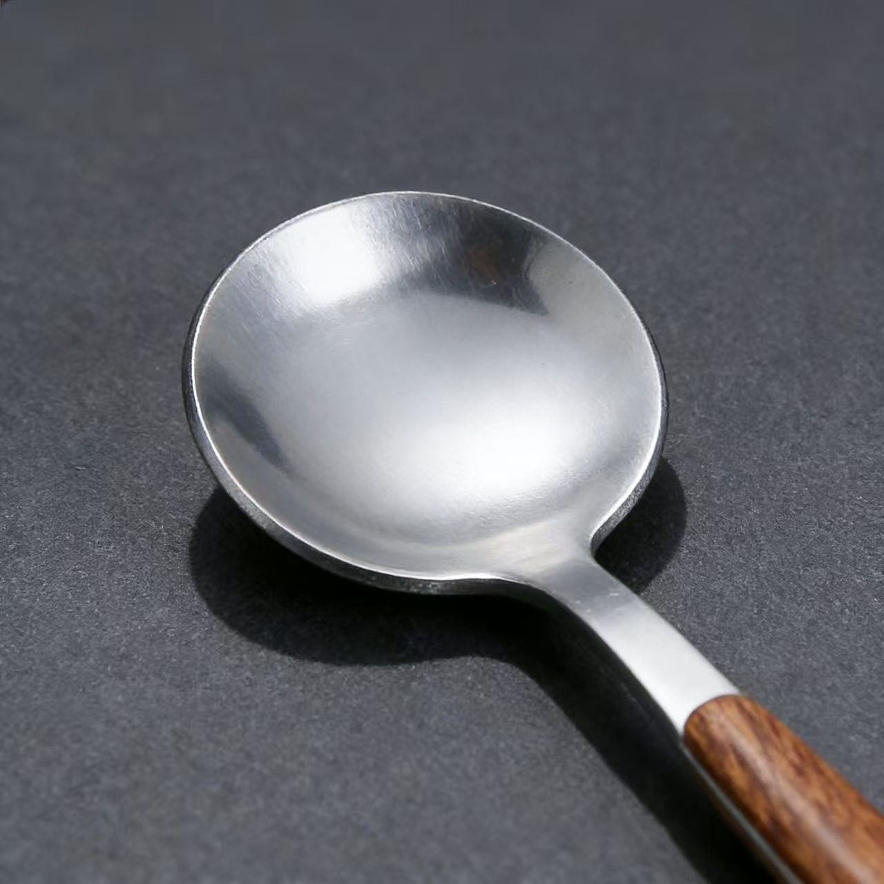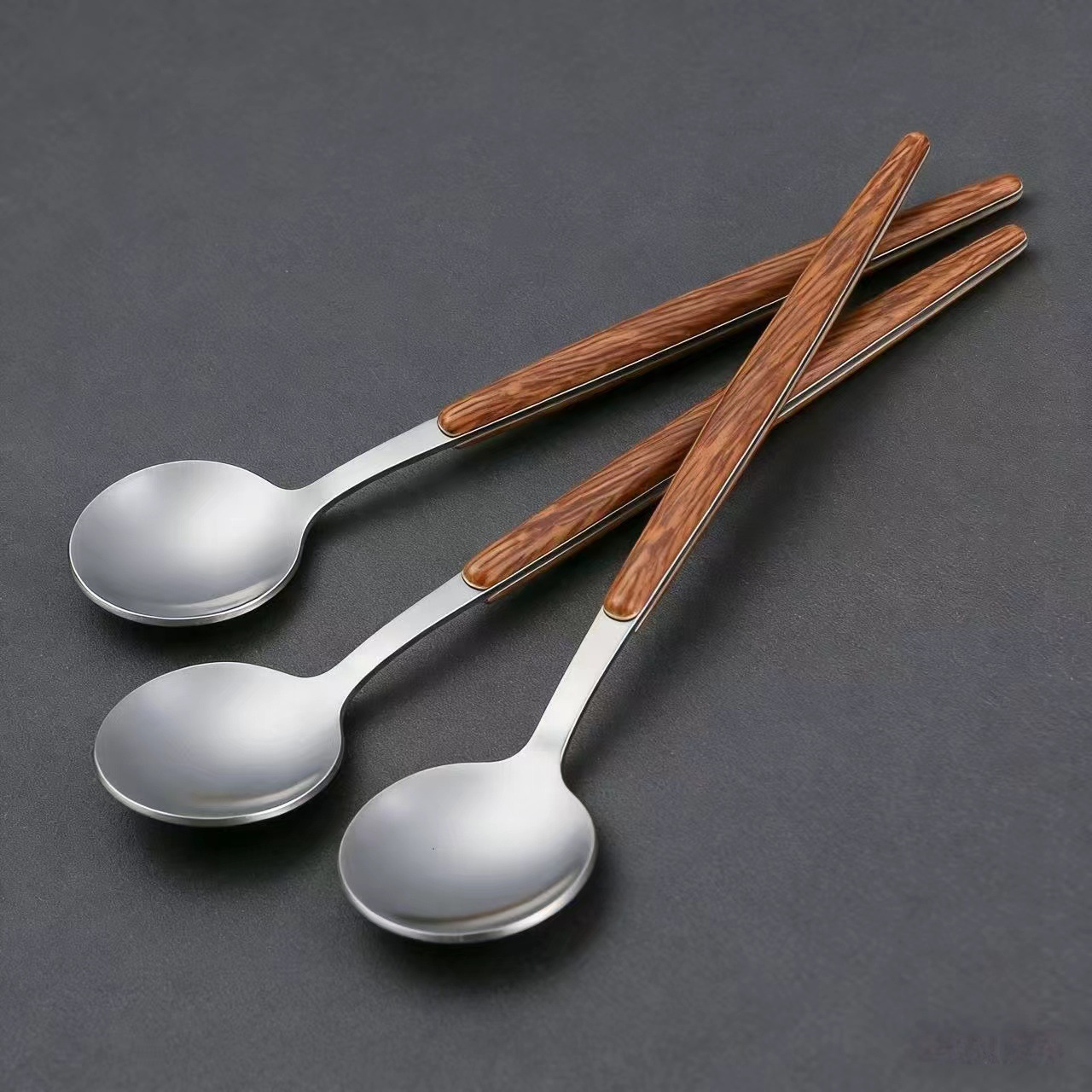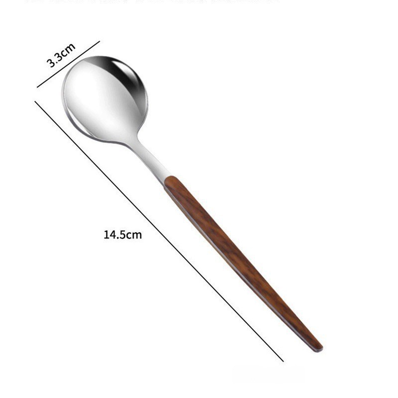 stainless steel wood grain clamp handle dessert spoon