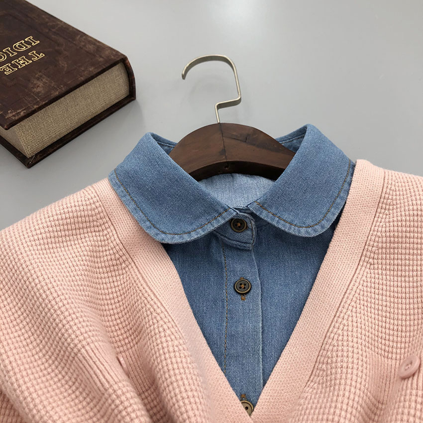 denim blue pointed collar