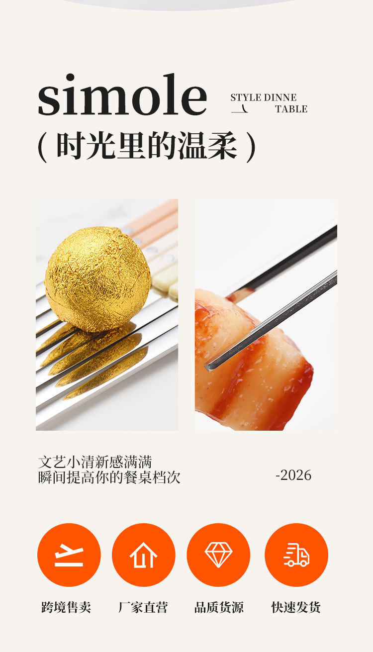 | 304 stainless steel rivet-handle chopsticks | CN¥ 4.5 |
