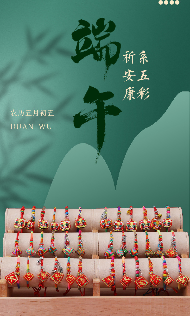 golden silk thin rope, three zongzi, green color