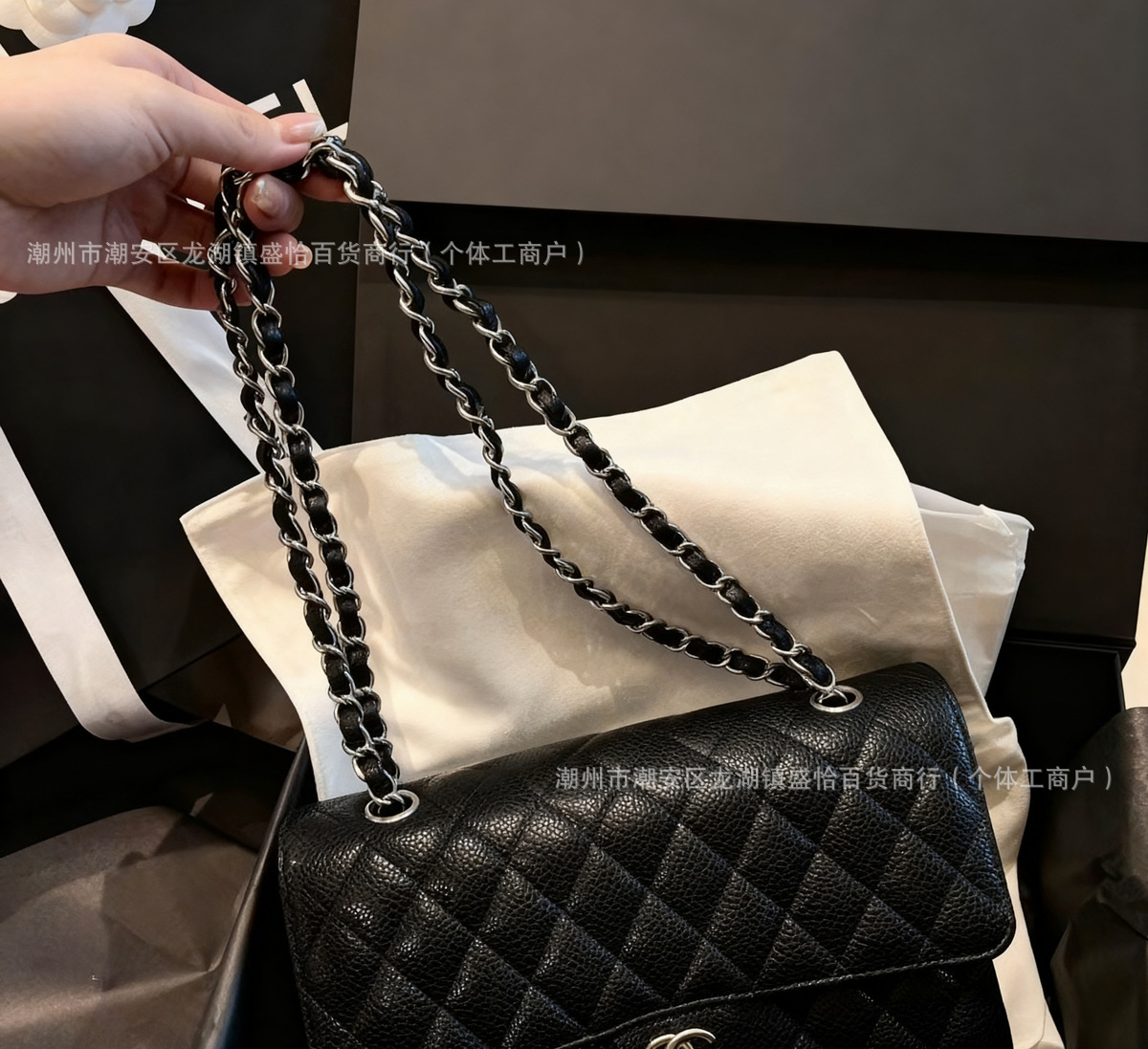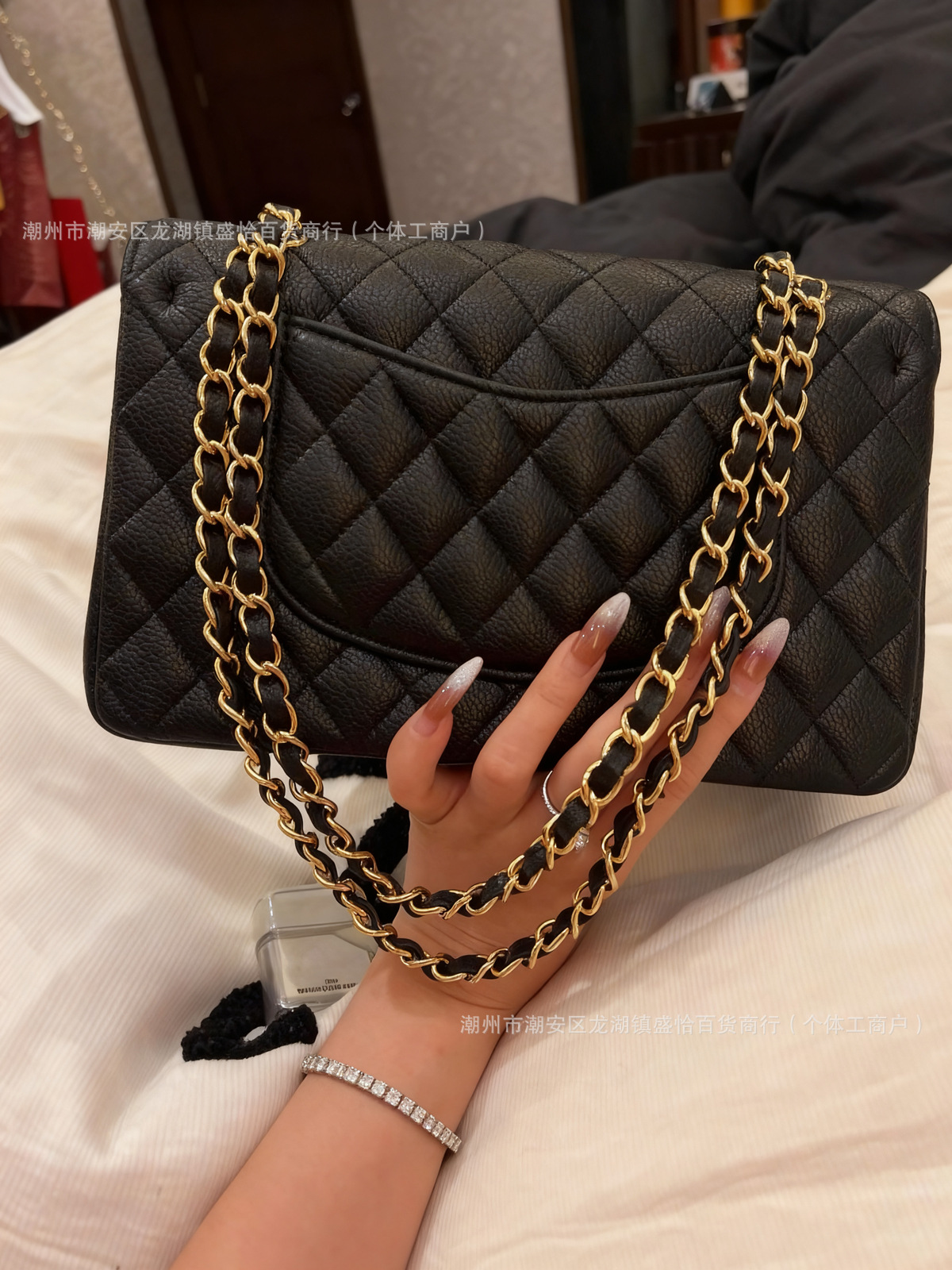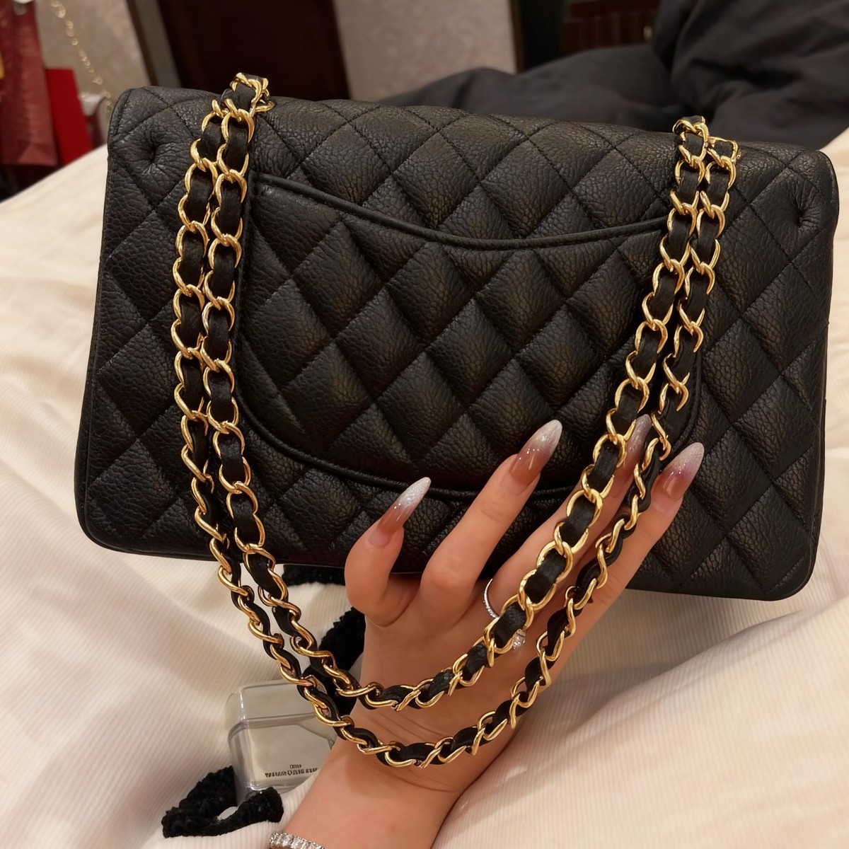 cowhide black gold small size 23cm