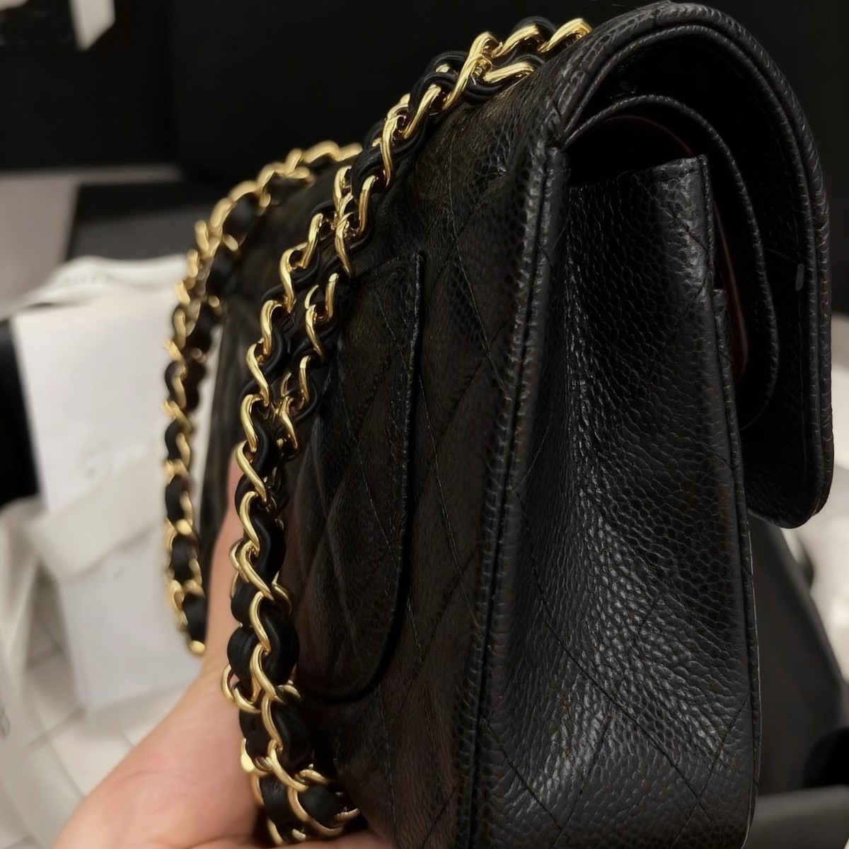 cowhide black gold large size 30cm