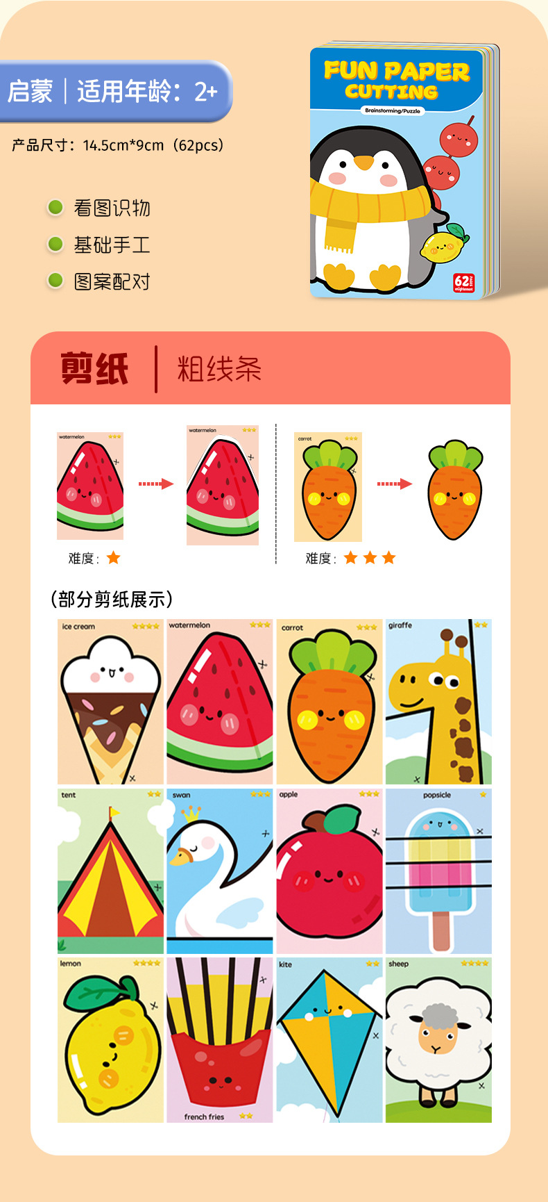 [penguin] 62 basic paper cuts +1 plastic scissors