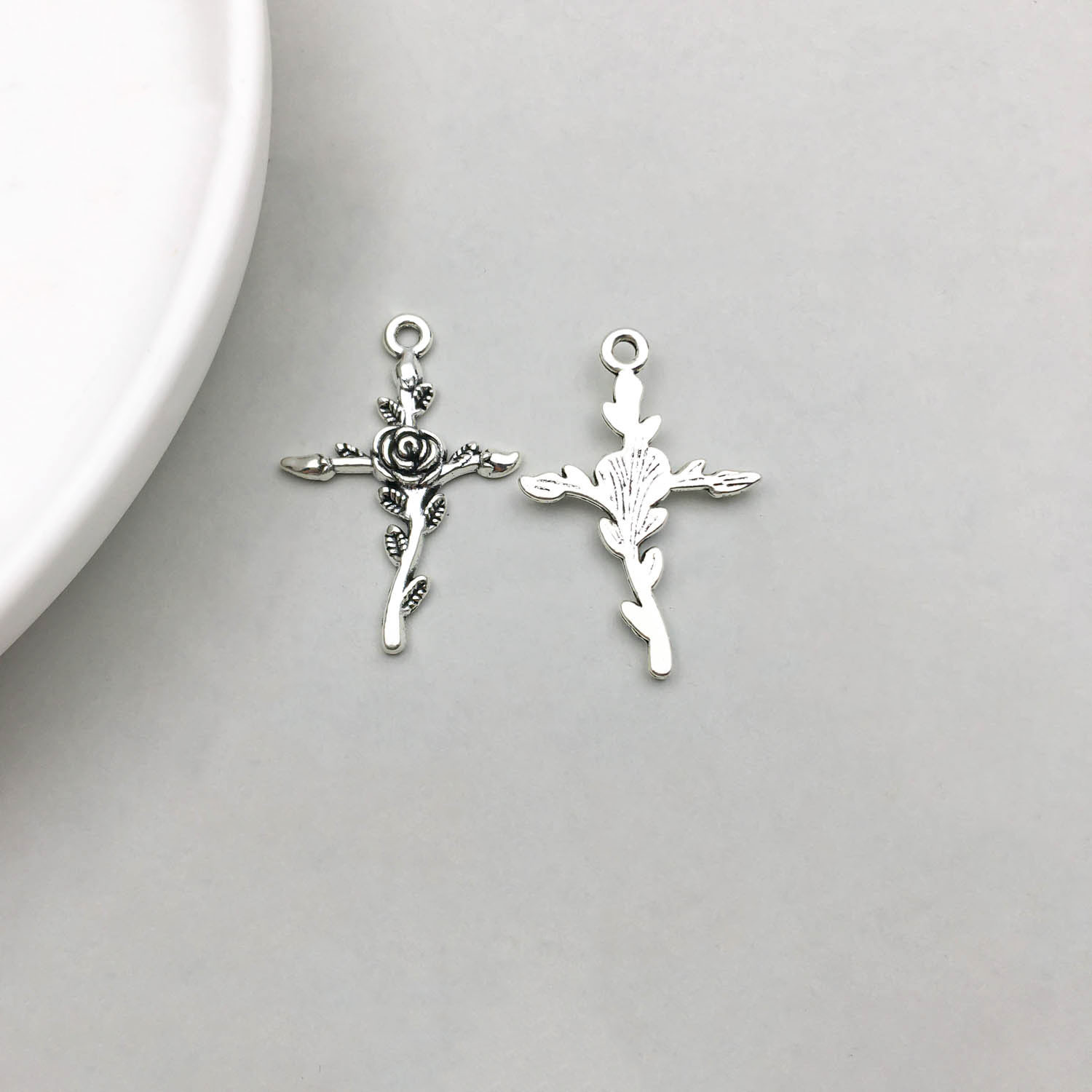 1 antique silver rose cross 23*35mm-1.8g-5857