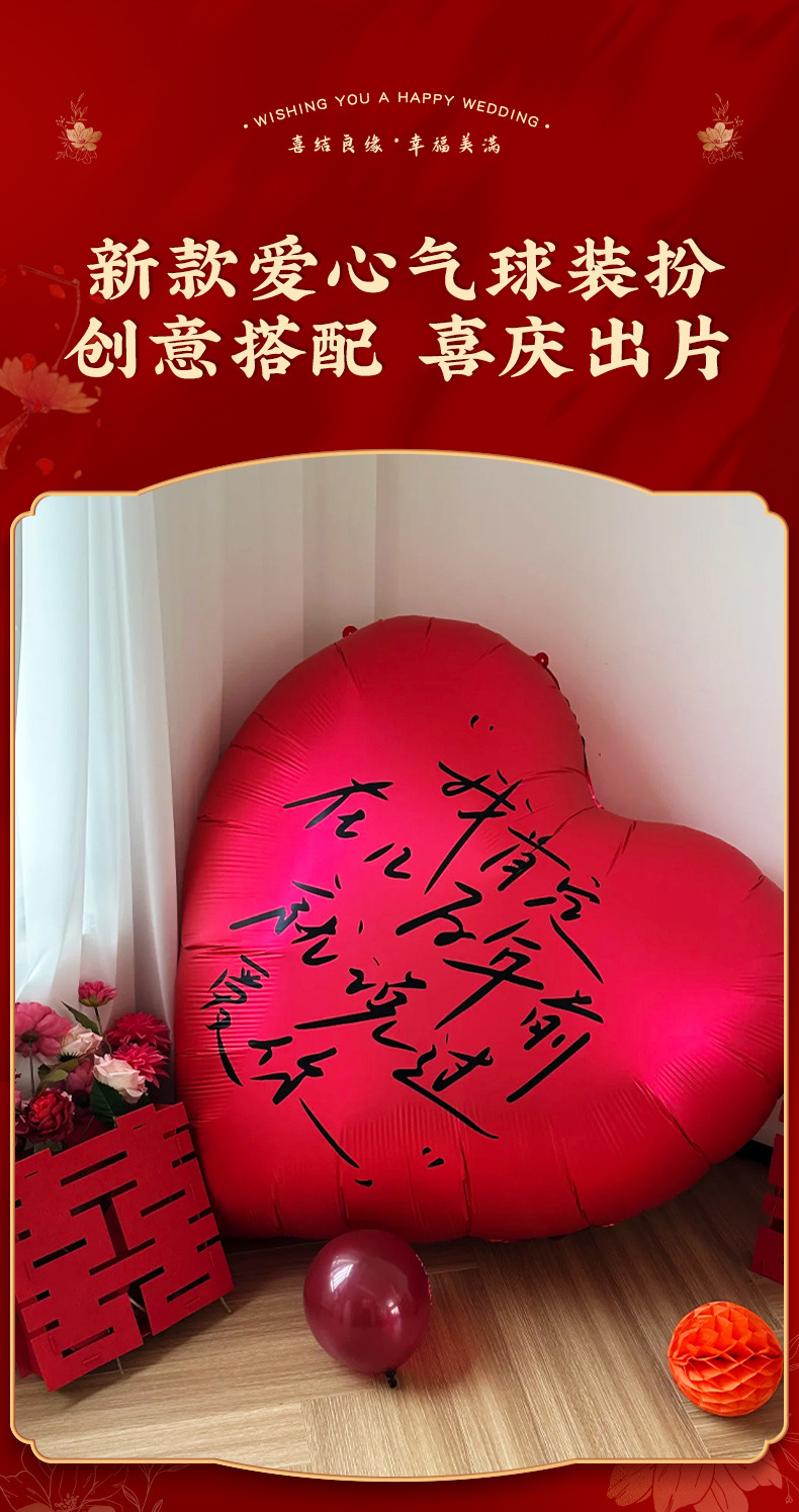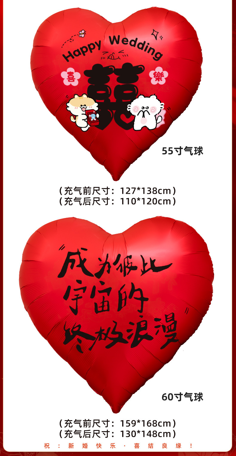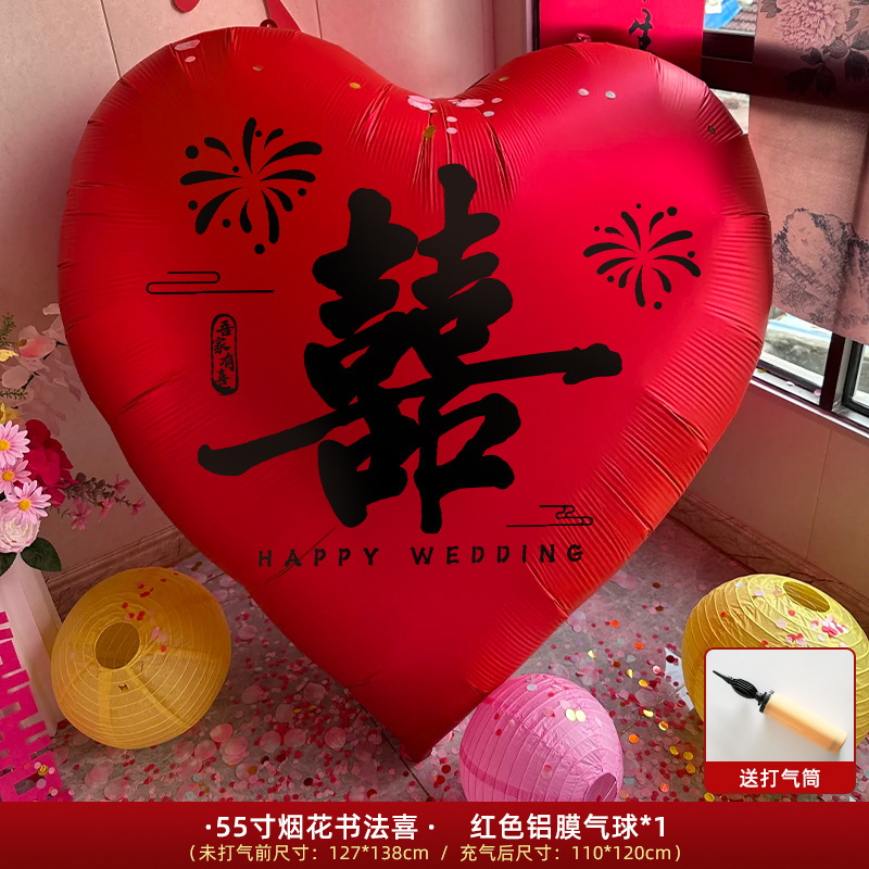 55-inch red [calligraphy happy balloon] + 30cm pile head * 6 get tire pump free