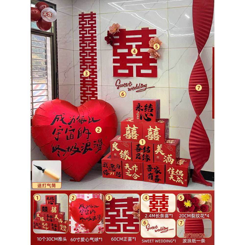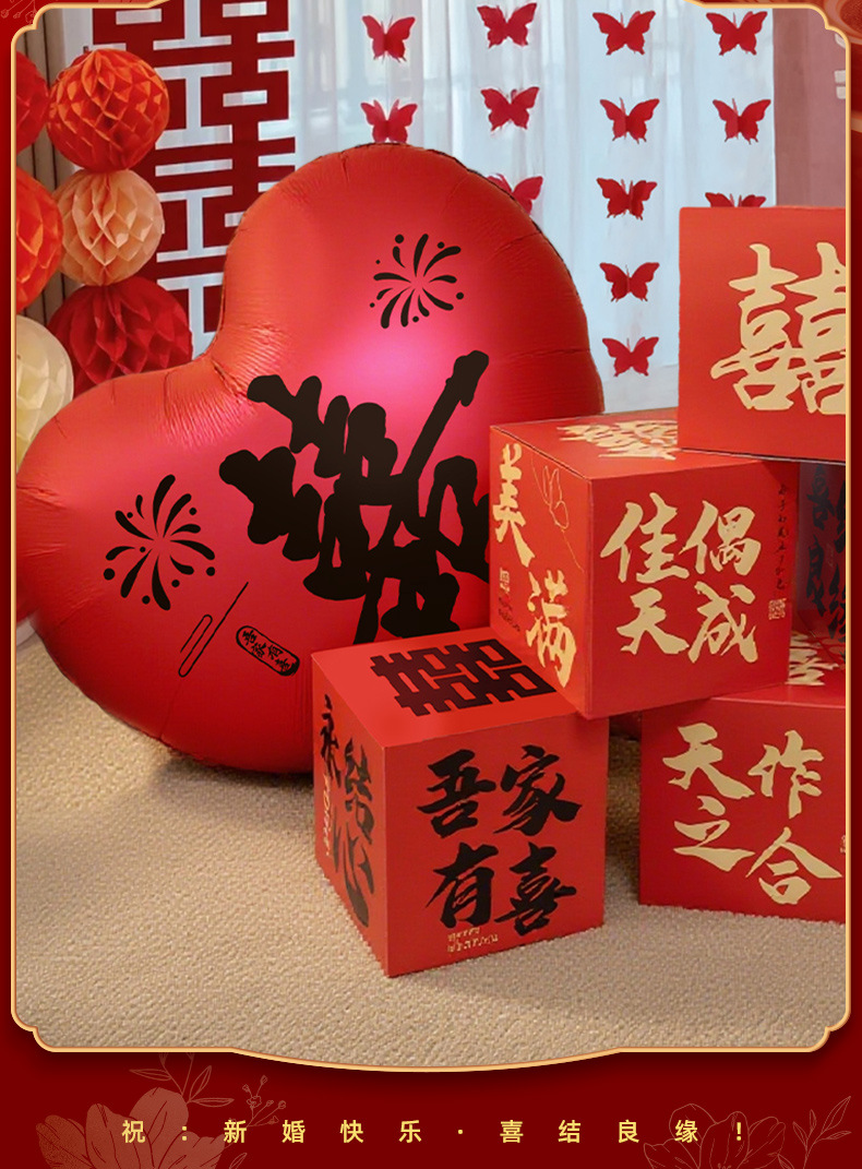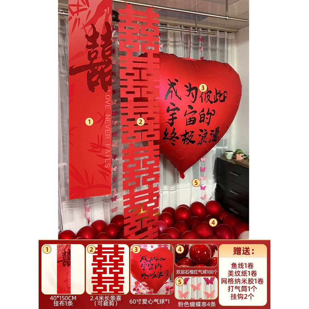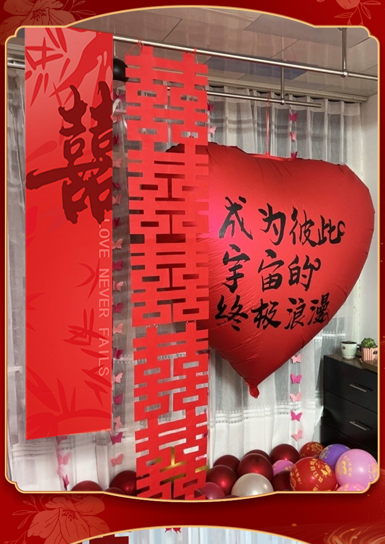 55-inch red [calligraphy happy balloon] + 30cm pile head * 6 get tire pump free