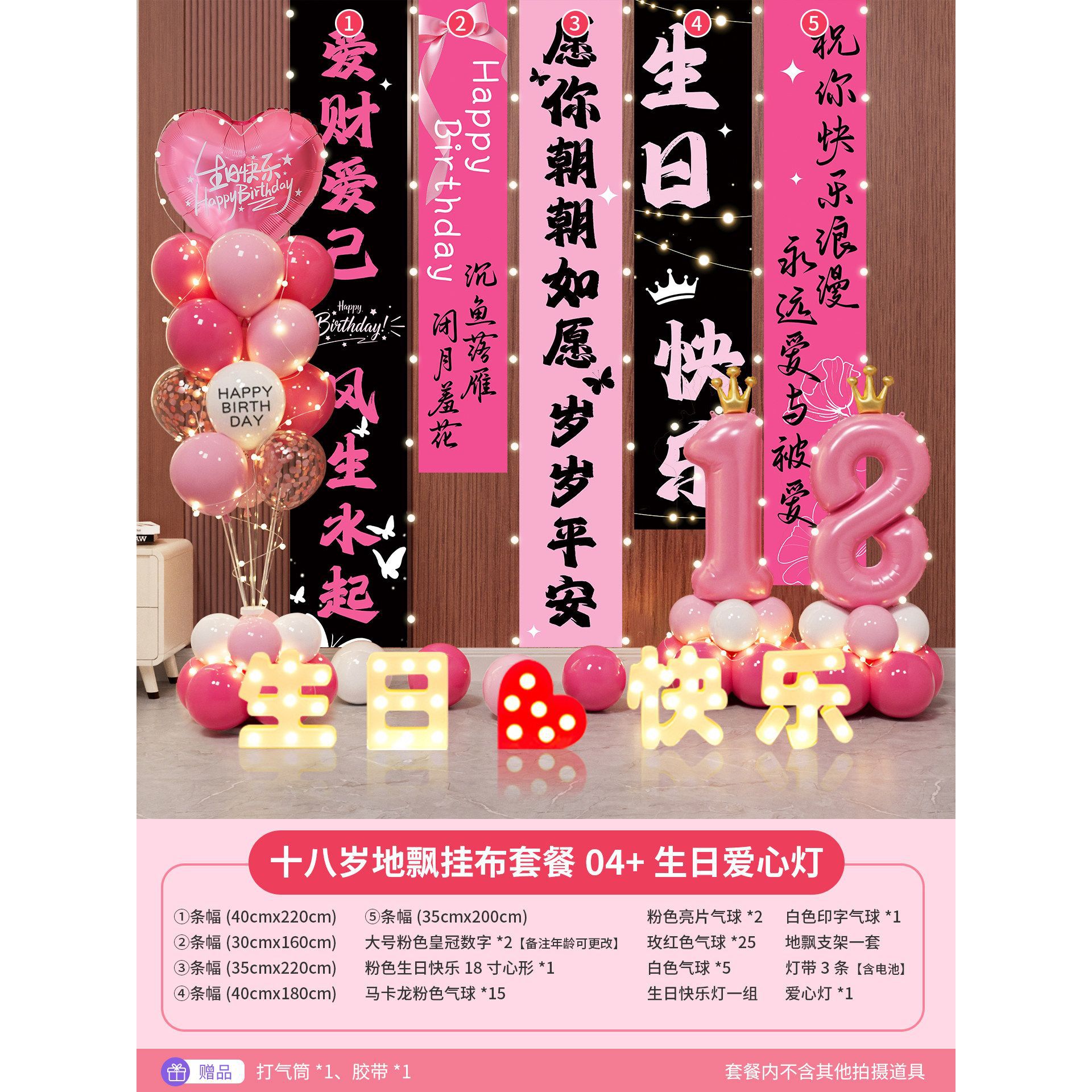 18-year-old floating banner combination 05 + happy birthday light