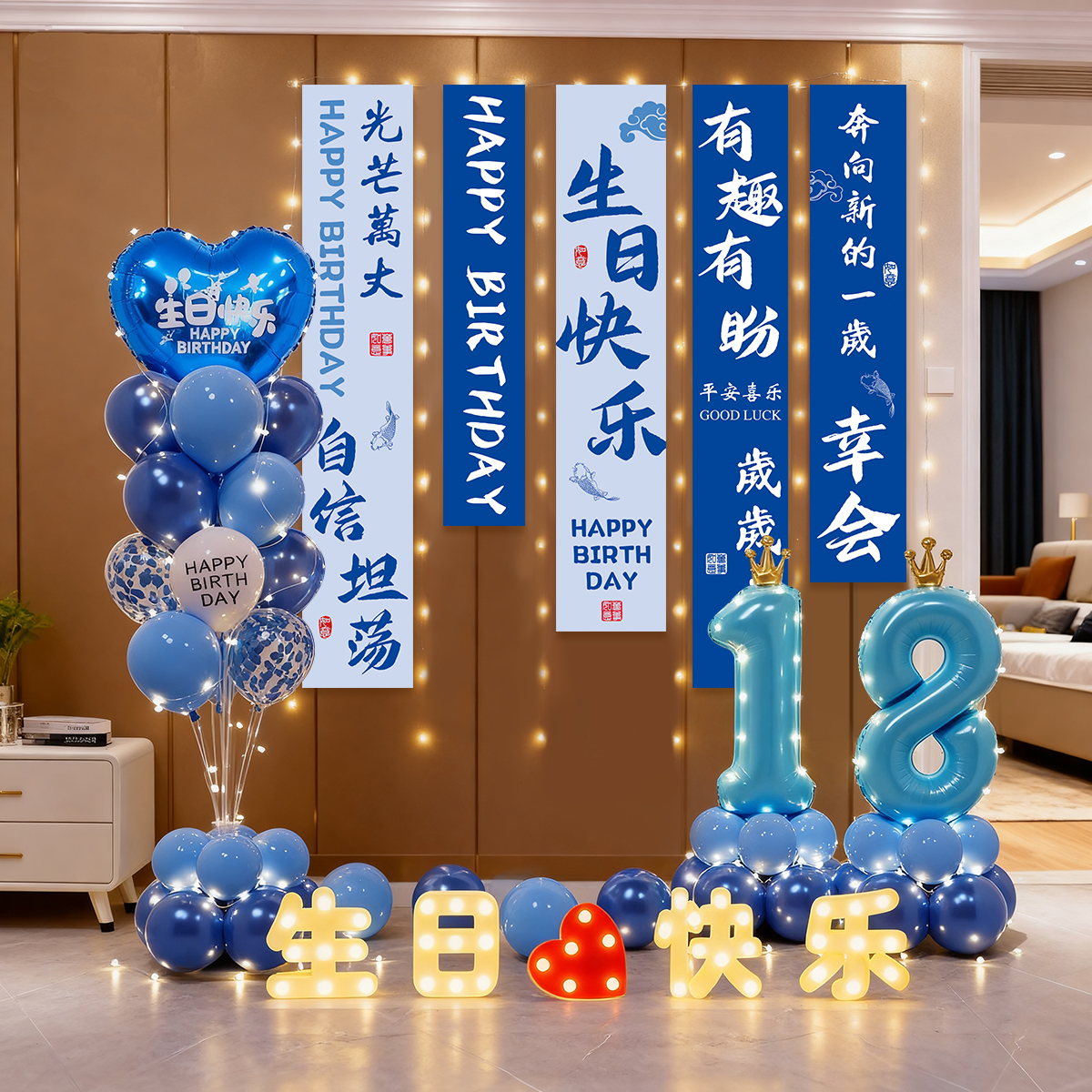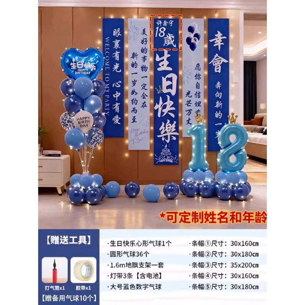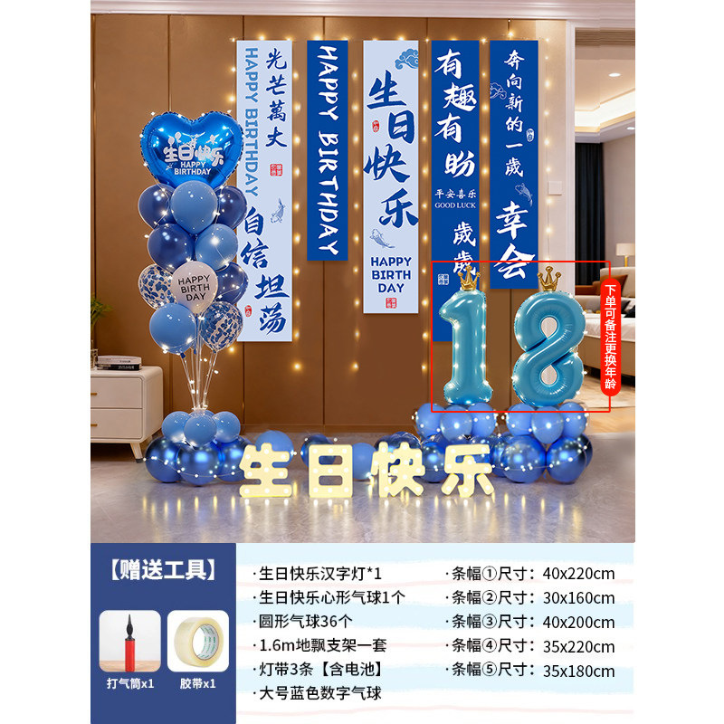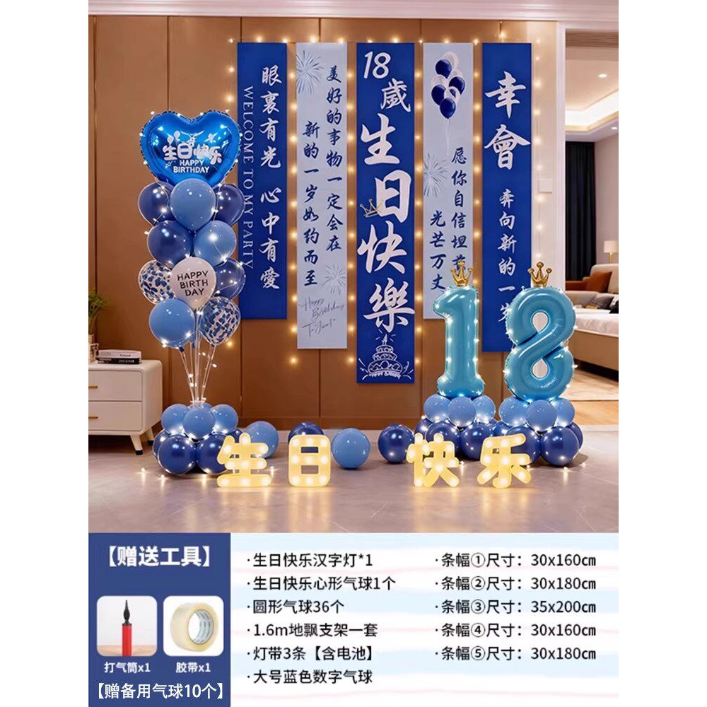 18-year-old boy blues floating banner package 08 + happy birthday lights