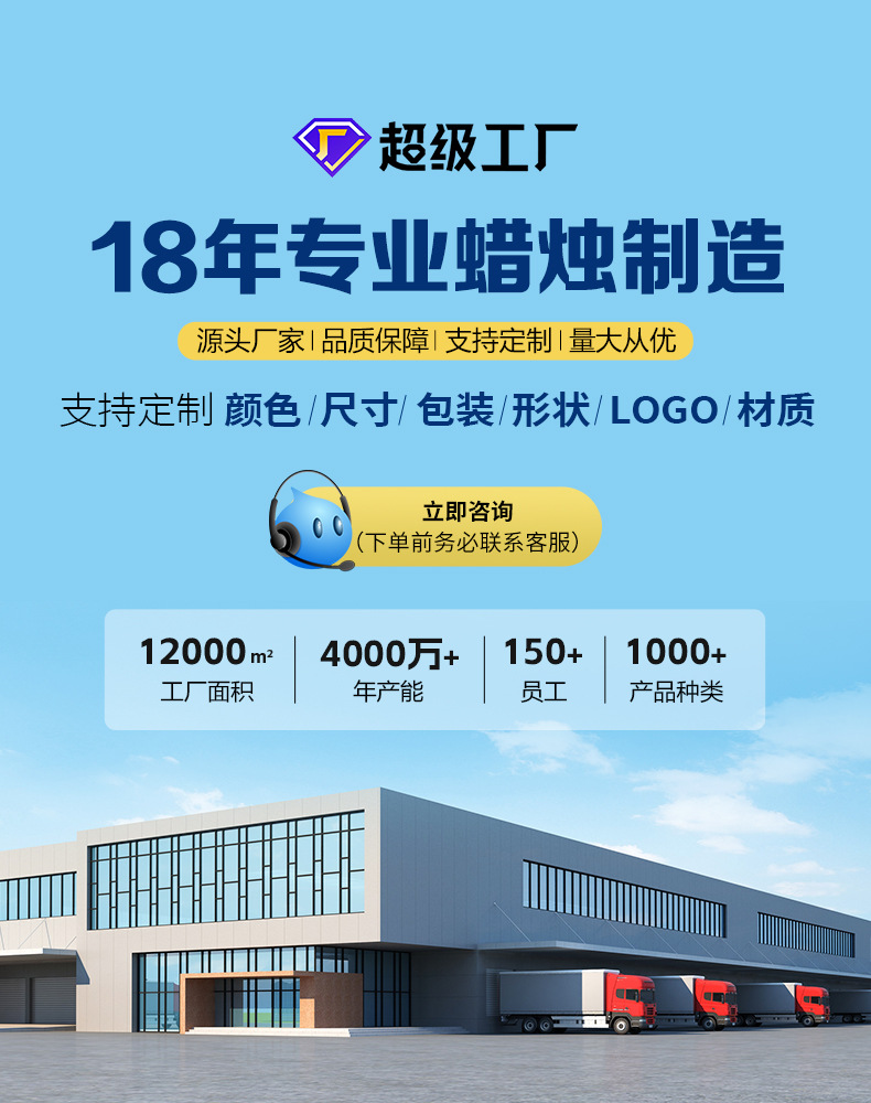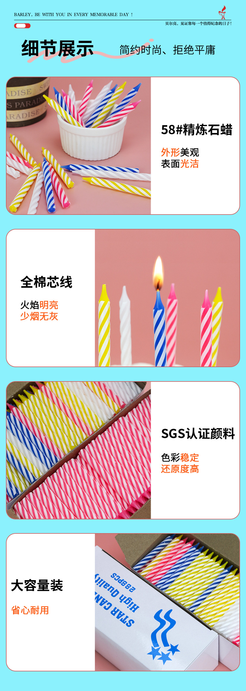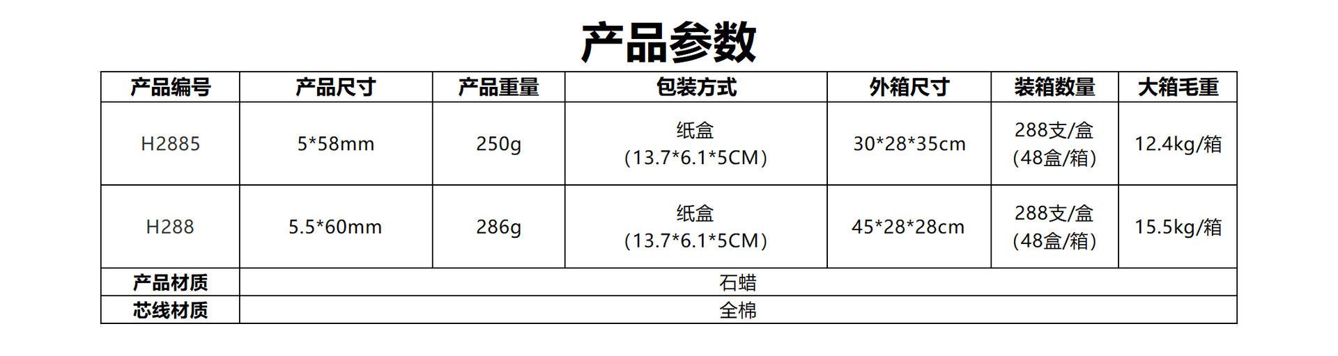 boxed quantity: 72 candles in four colors, 288 candles in total/white box