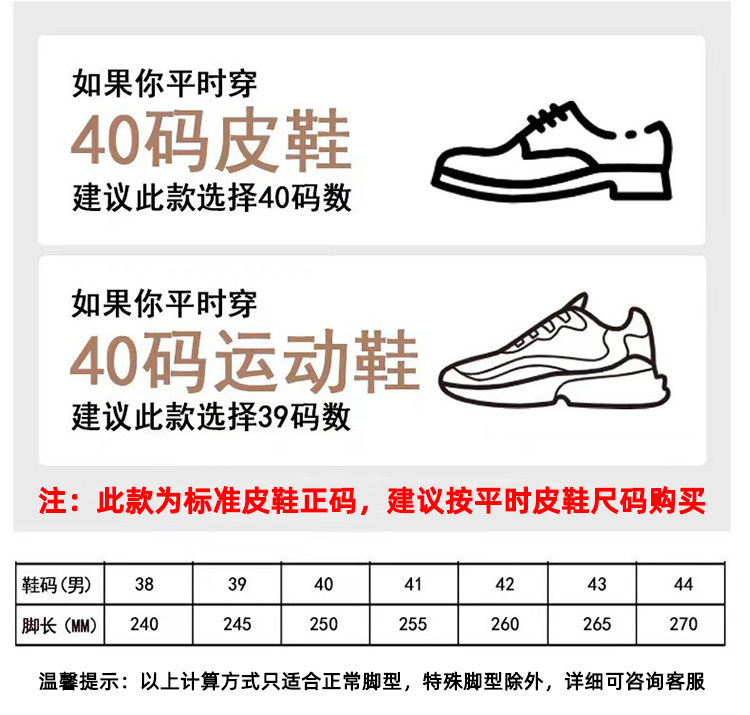 | 40 standard leather shoes size | CN¥ 242.52 |