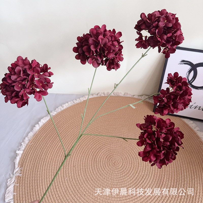 5 heads 270 pieces hydrangea-deep red