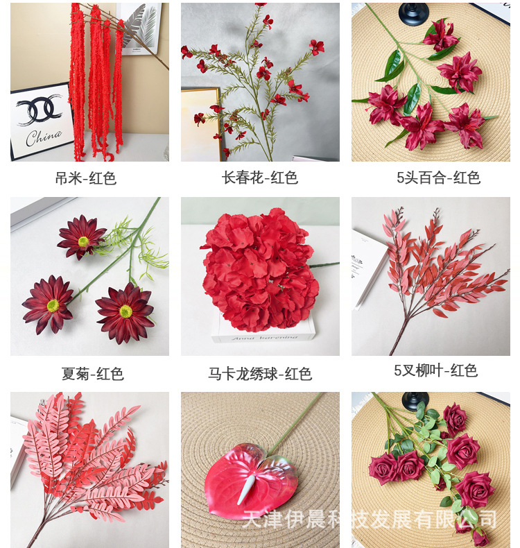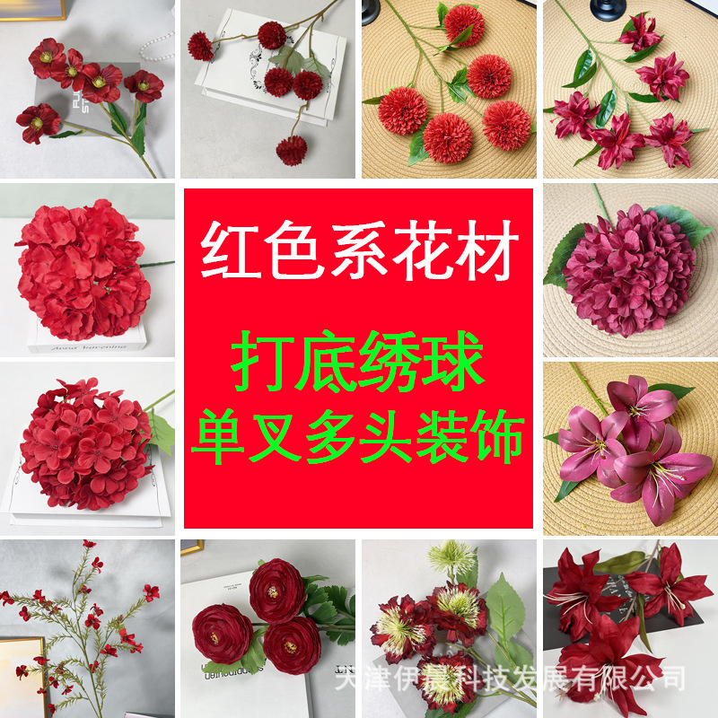 5-head bunch of hydrangeas, 135 pieces-red