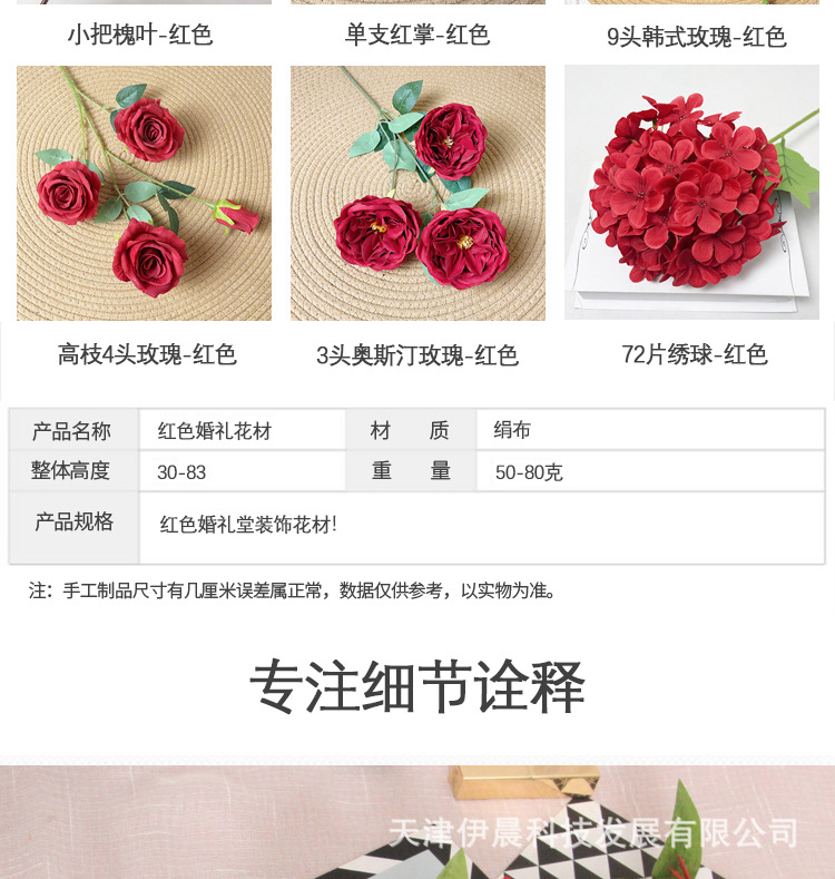 5 heads 270 pieces hydrangea-red