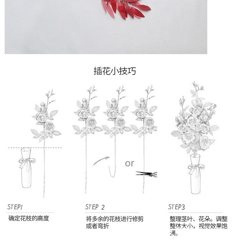 3-head diamond rose, no leaves-red