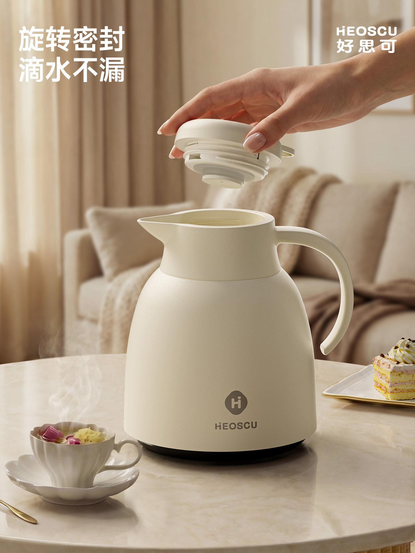 [red core technology] cream white 1000ml [long-term heat preservation + one-button press to dispense water]