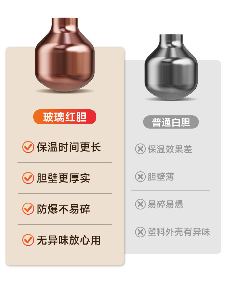 【red liner technology】flaming red 1500ml 【long-term heat preservation + one-button press to dispense water】