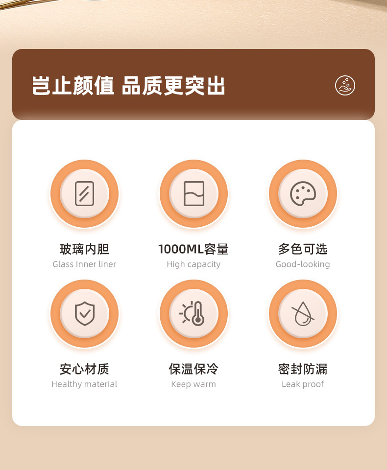 black warm-keeping model – 1000ml [thickened glass inner liner + one-touch dispensing]
