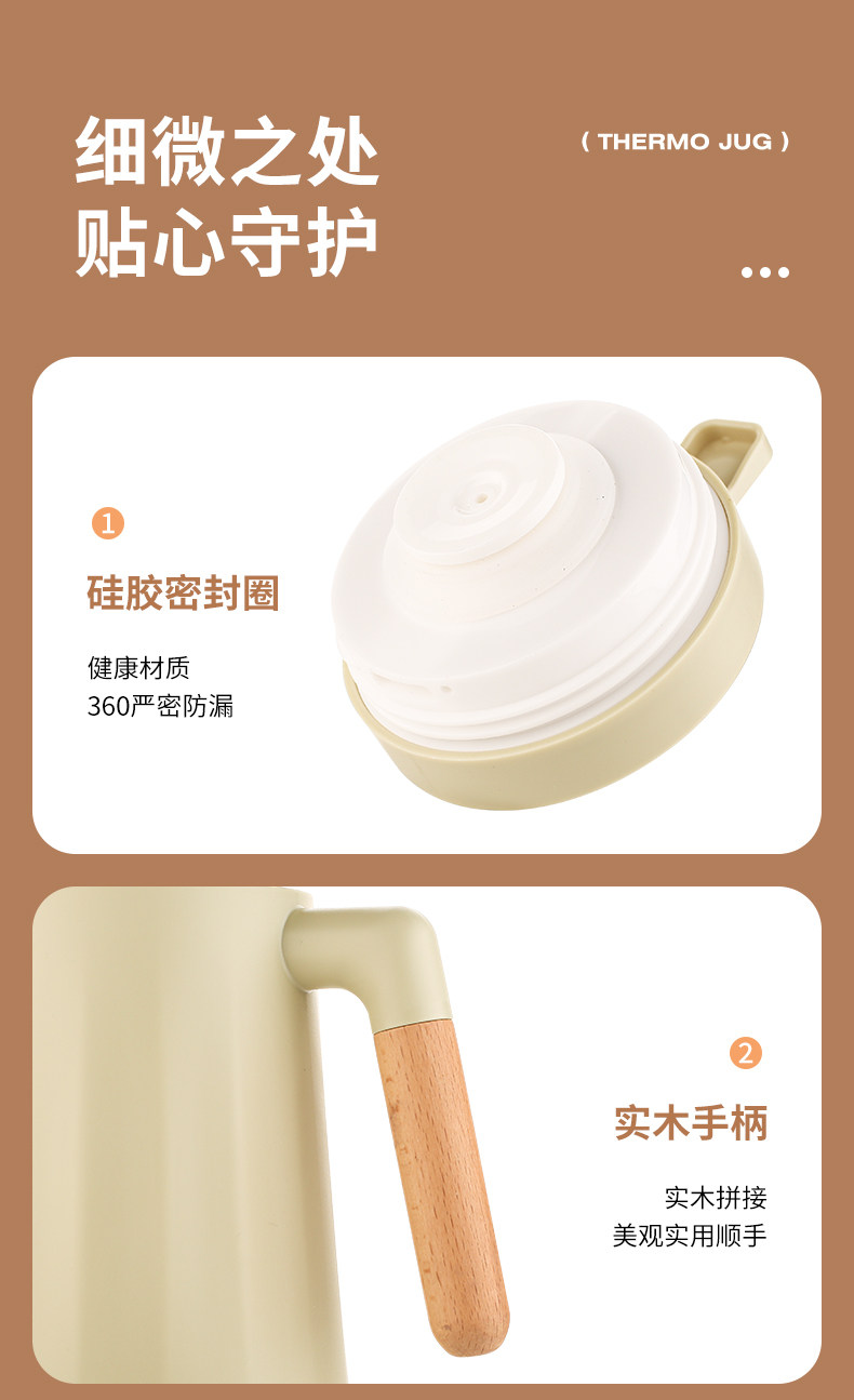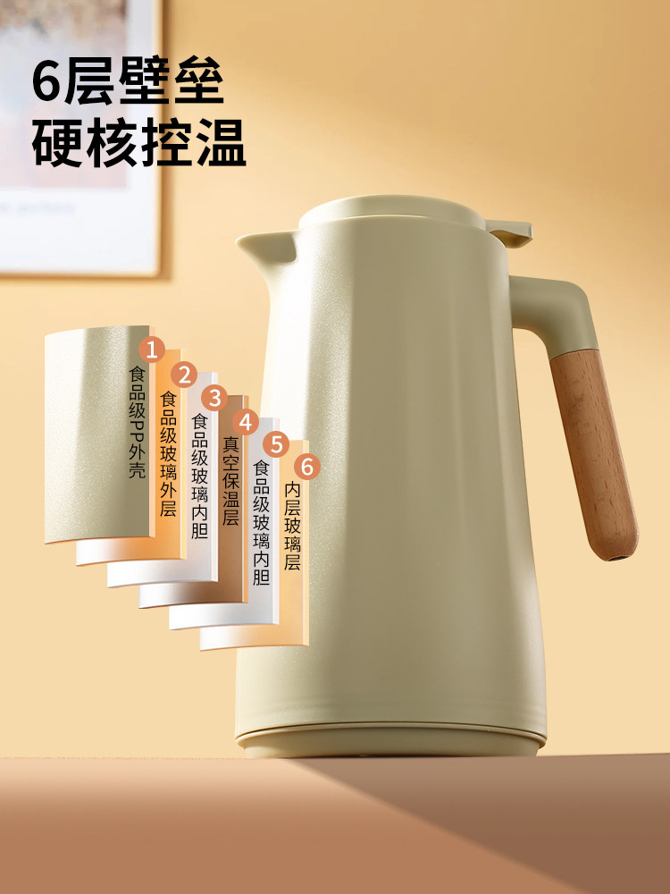 white wood grain – 1000ml [thickened glass inner liner + one-touch water dispensing]