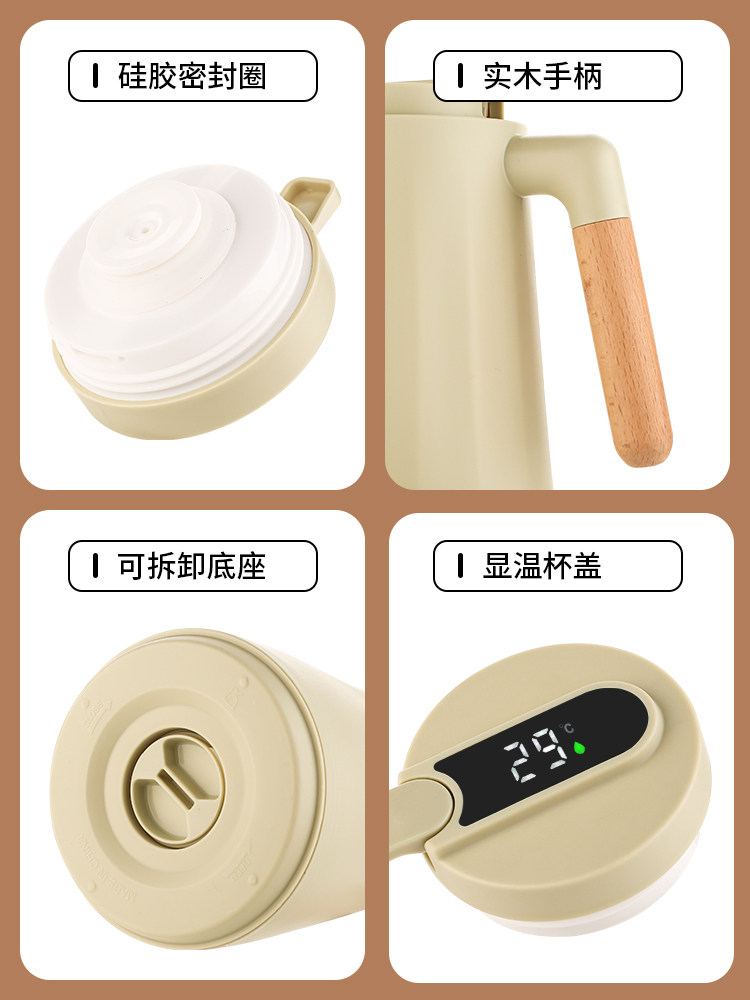 gray temperature-display model – 1000ml [thickened glass inner liner + one-touch water dispensing]