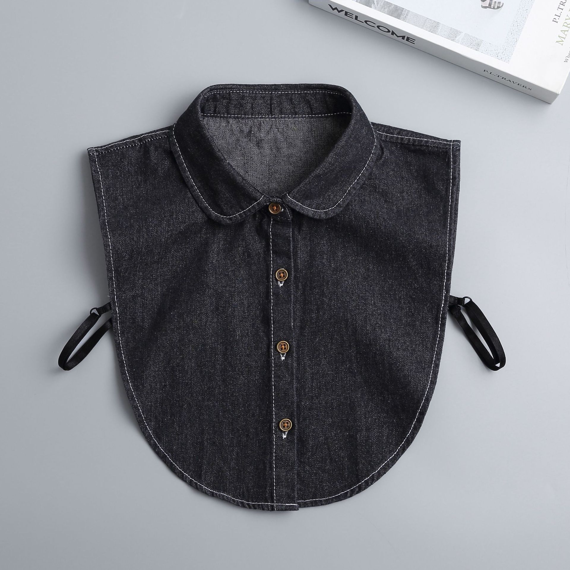 denim pointed collar black