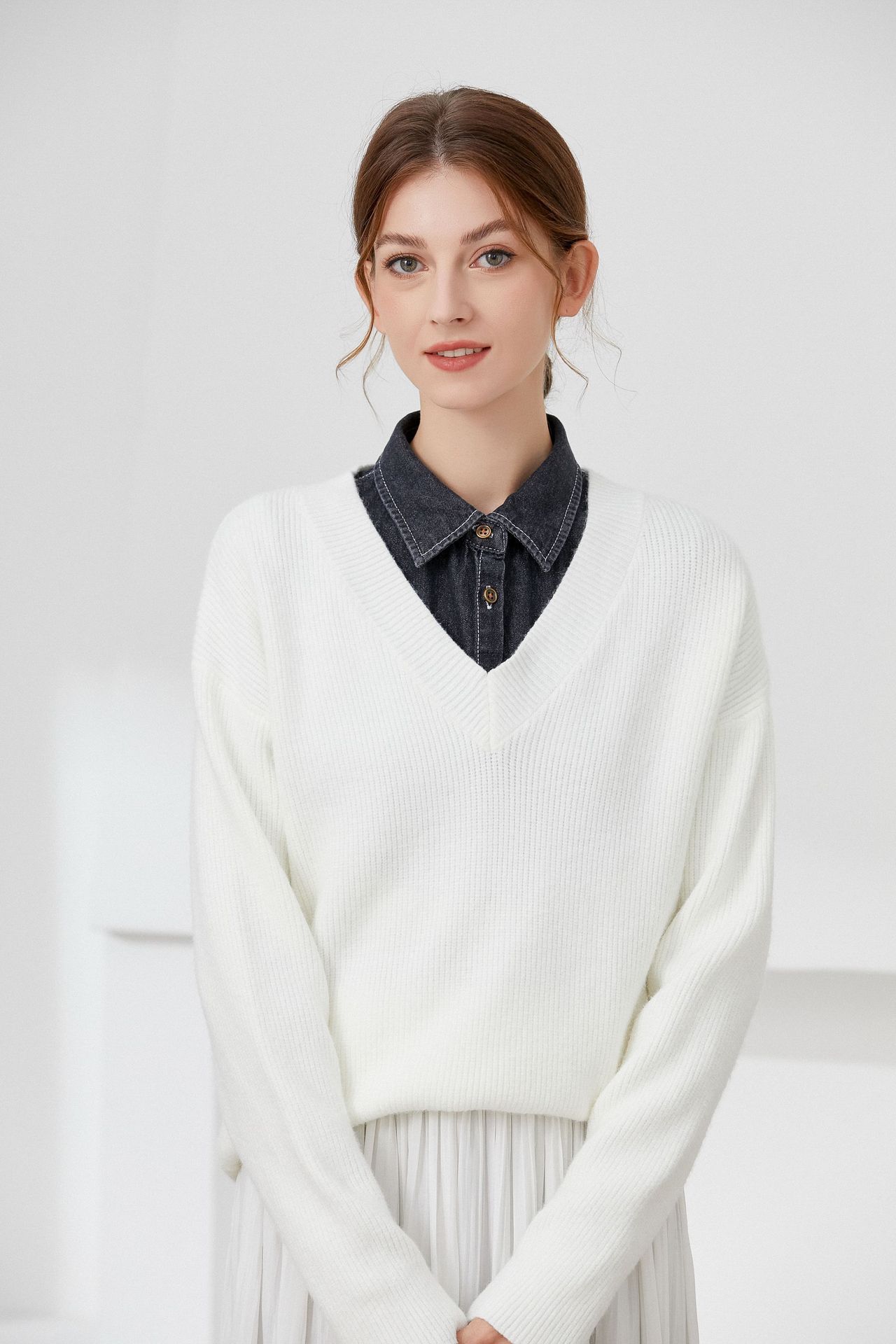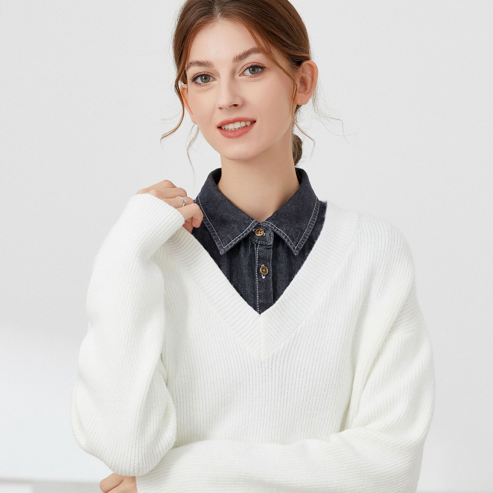 washed right angle pointed collar