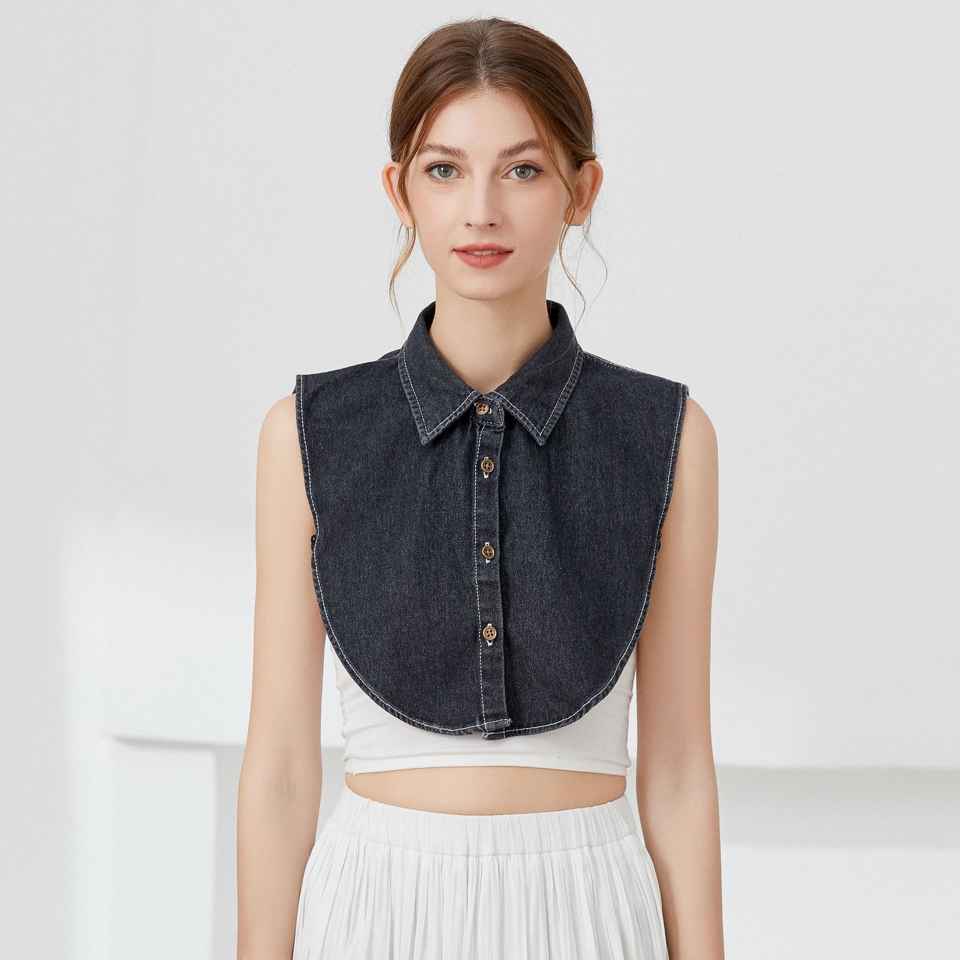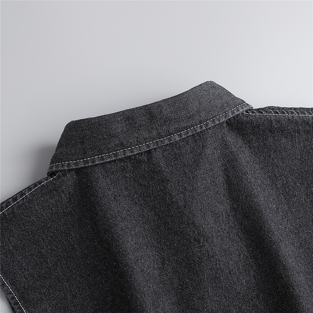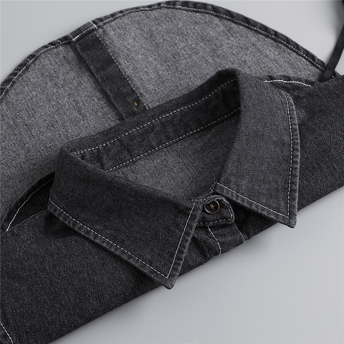 denim square collar black