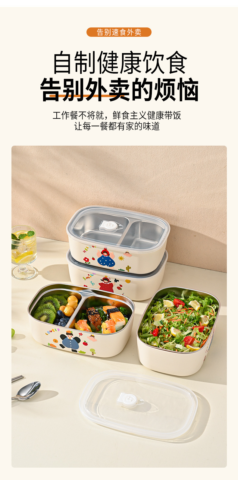 pattern: stainless steel family single-layer lunch box