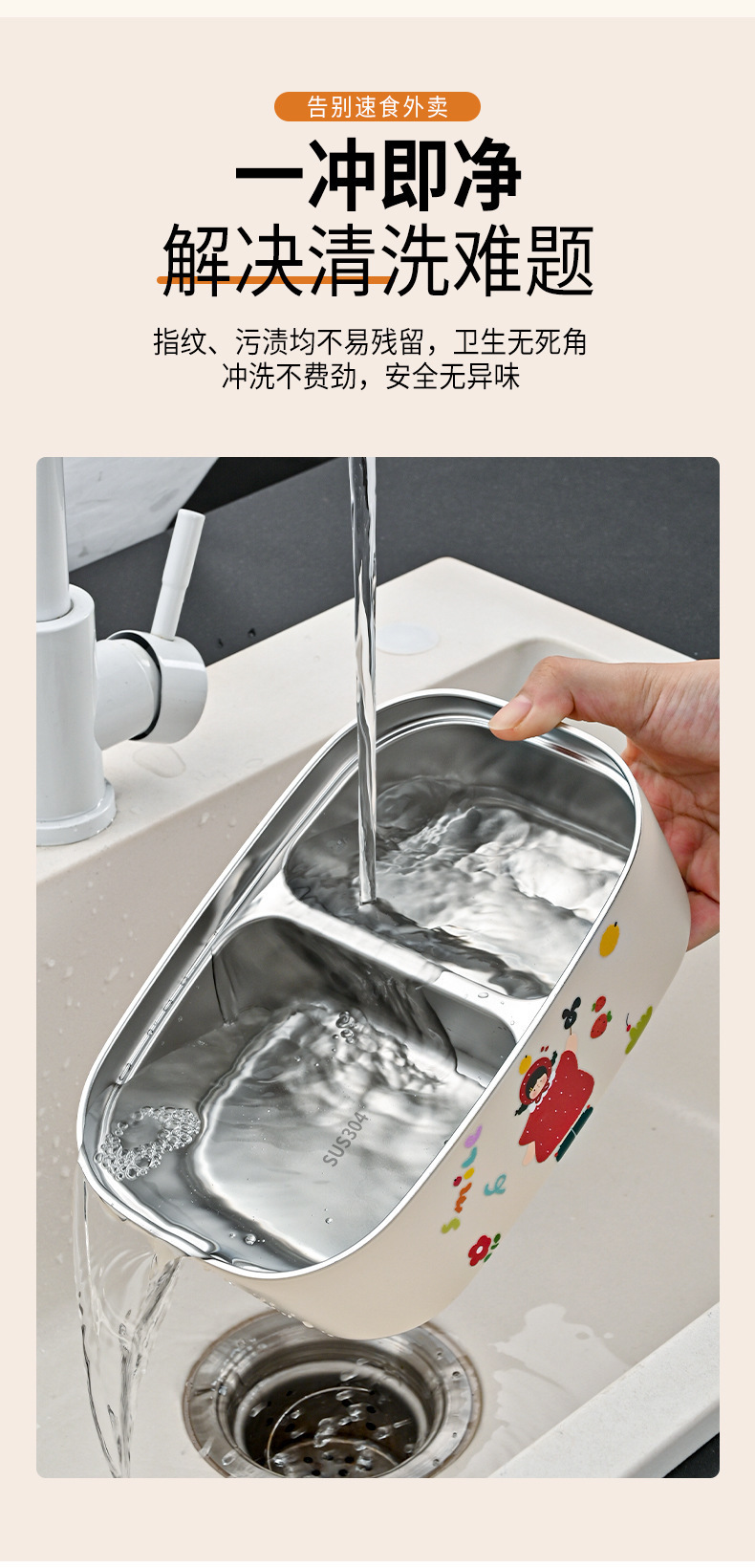 stainless steel family single-layer lunch box