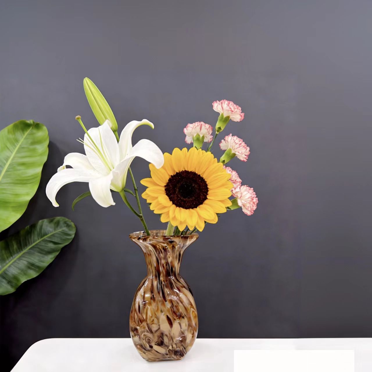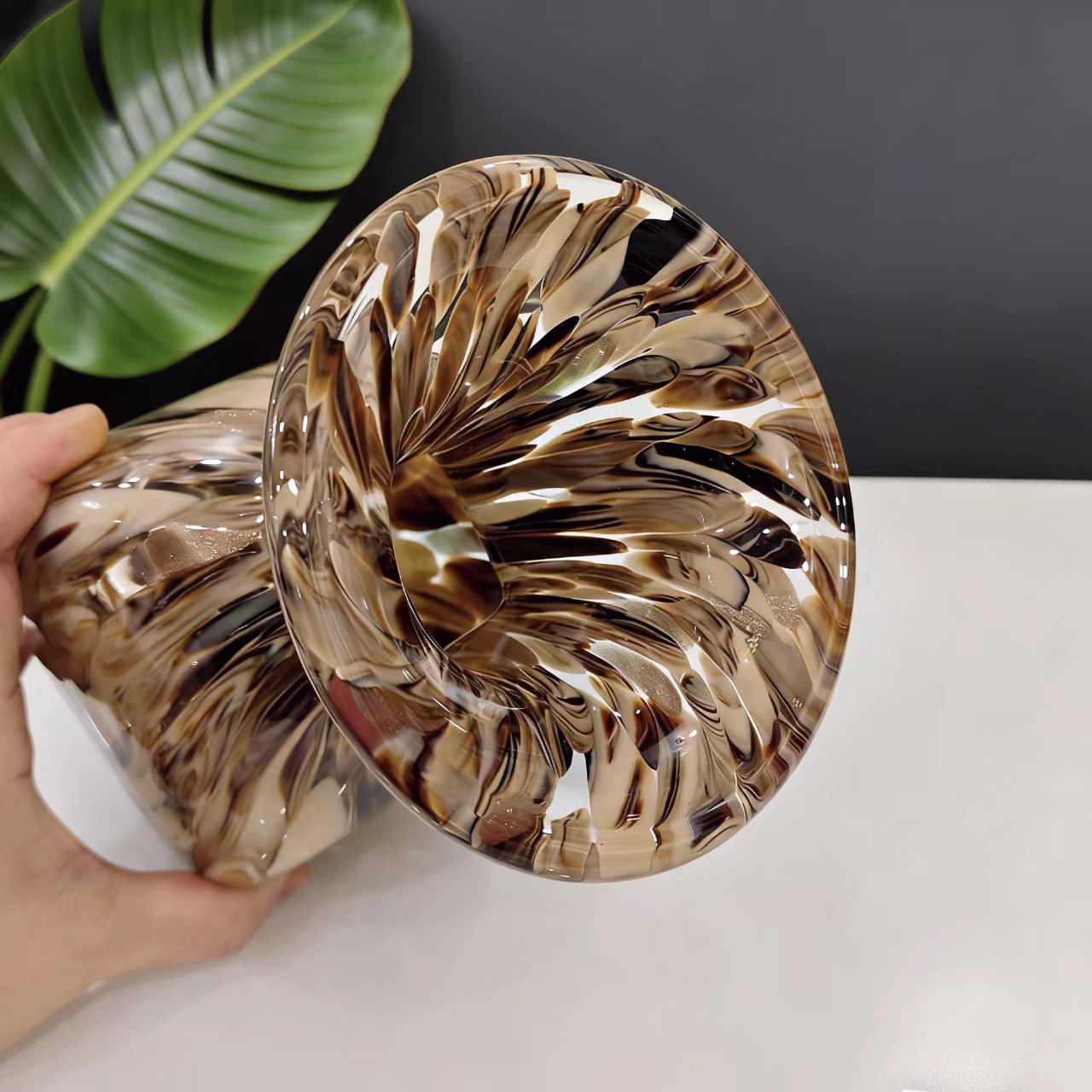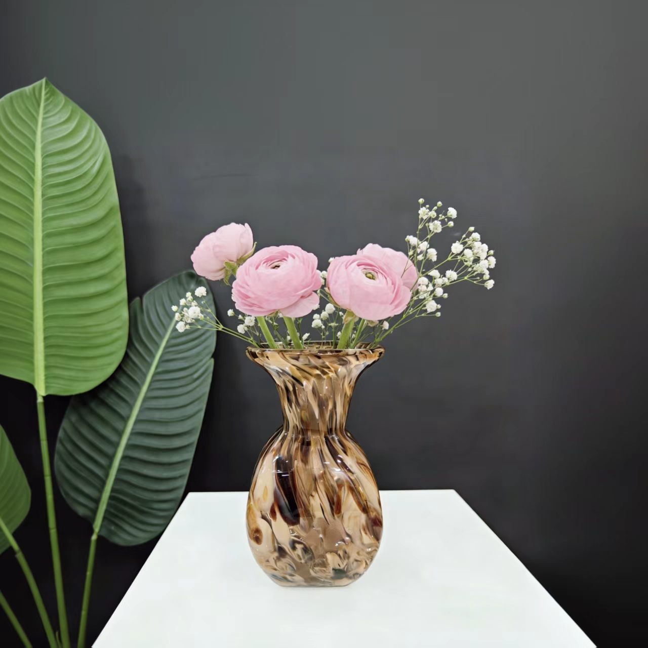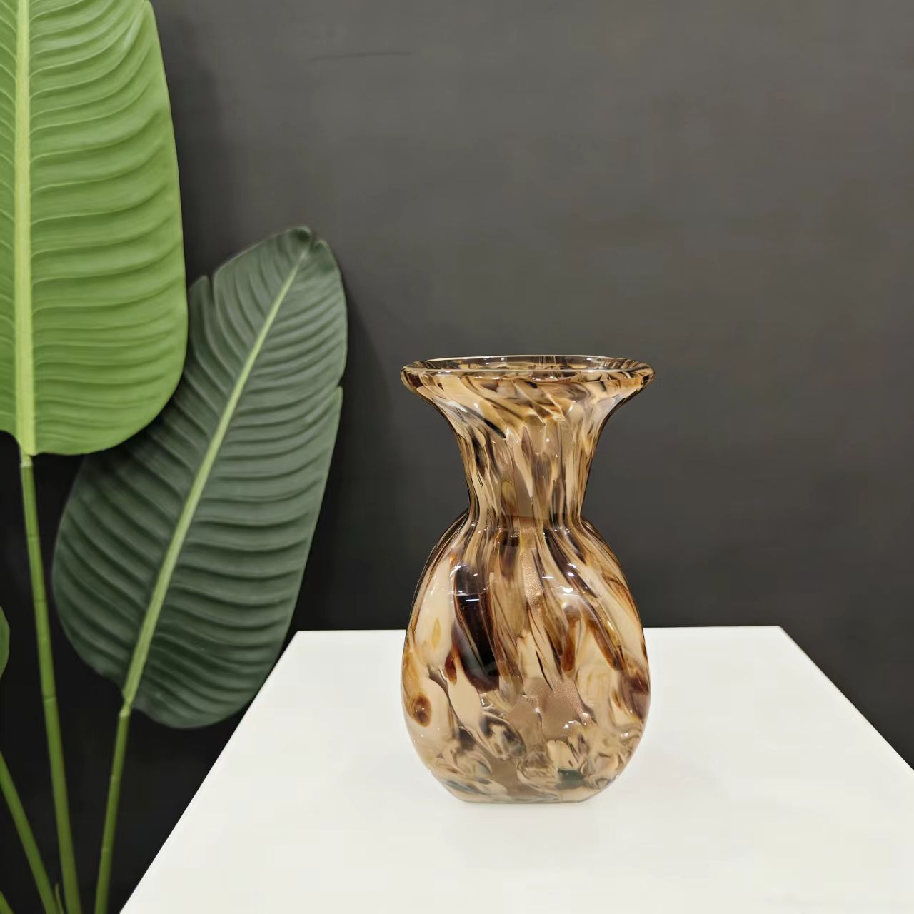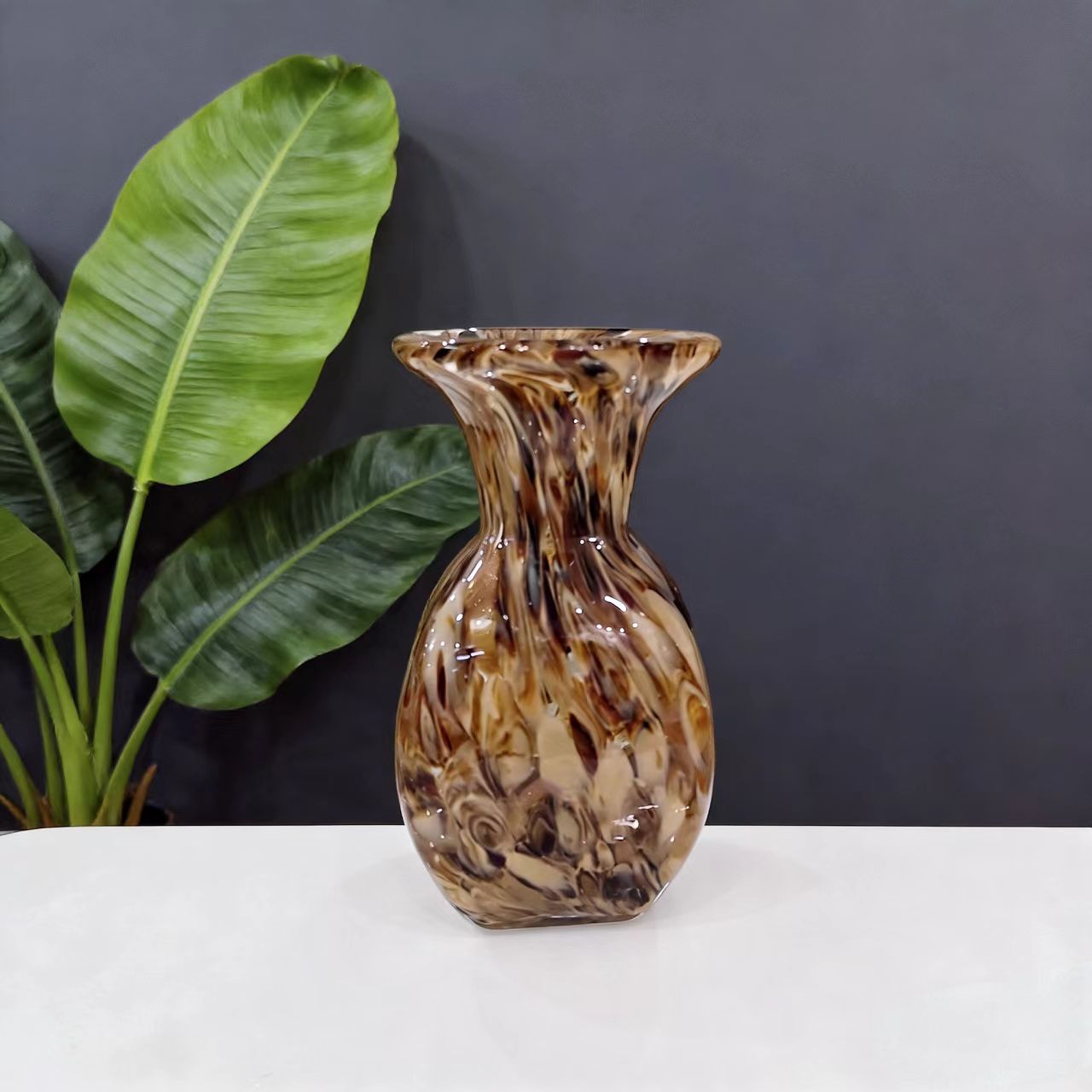 Nature-inspired freehand glass vase, with a texture reminiscent of natural water currents and nebula-like patterns that stretch freely; it has a transparent luster and a sense of quality that fits perfectly into modern, light luxury home decor.Vase size: 12*12*22cm, mouth diameter about 4cm.