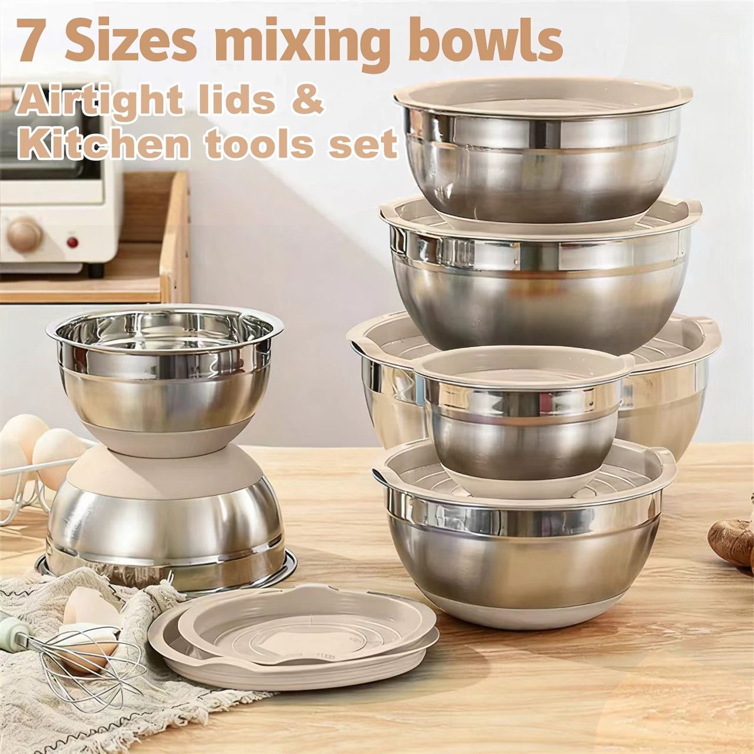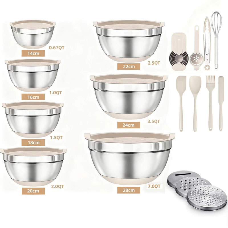 salad bowl beige 23-piece set (14cm+16cm+18cm+20cm+22cm+24cm+