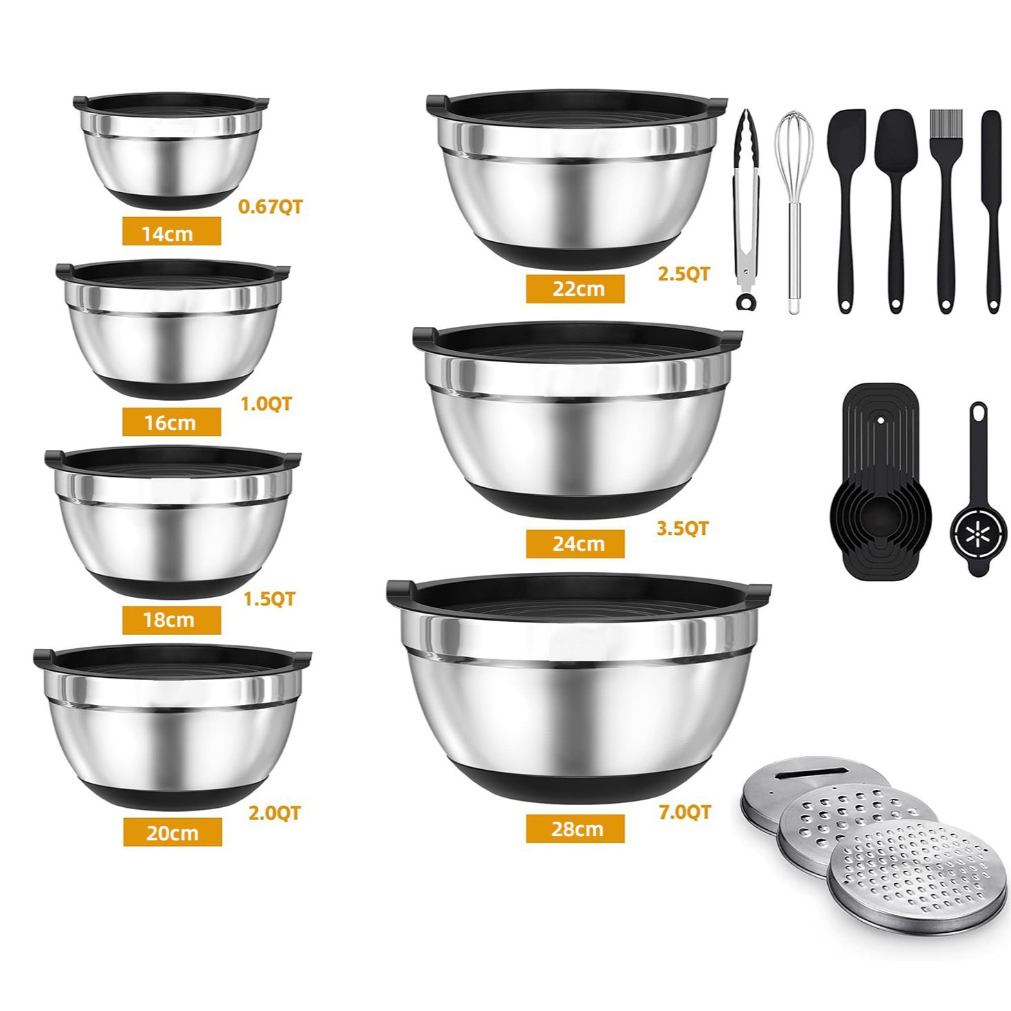 salad bowl black 23-piece set (14cm+16cm+18cm+20cm+22cm+24cm+