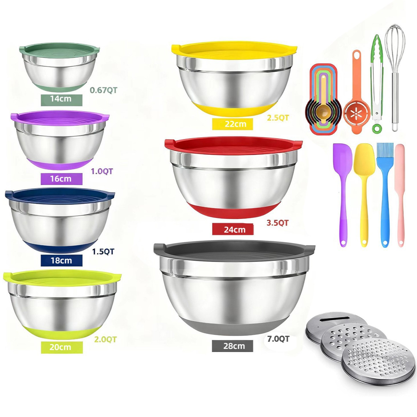 salad bowl assorted colors 23-piece set (14cm+16cm+18cm+20cm+22cm+24cm+