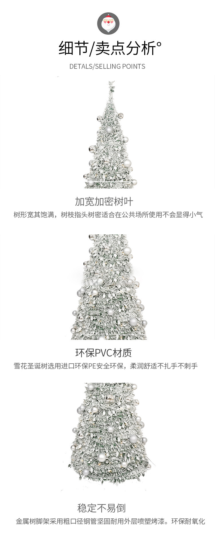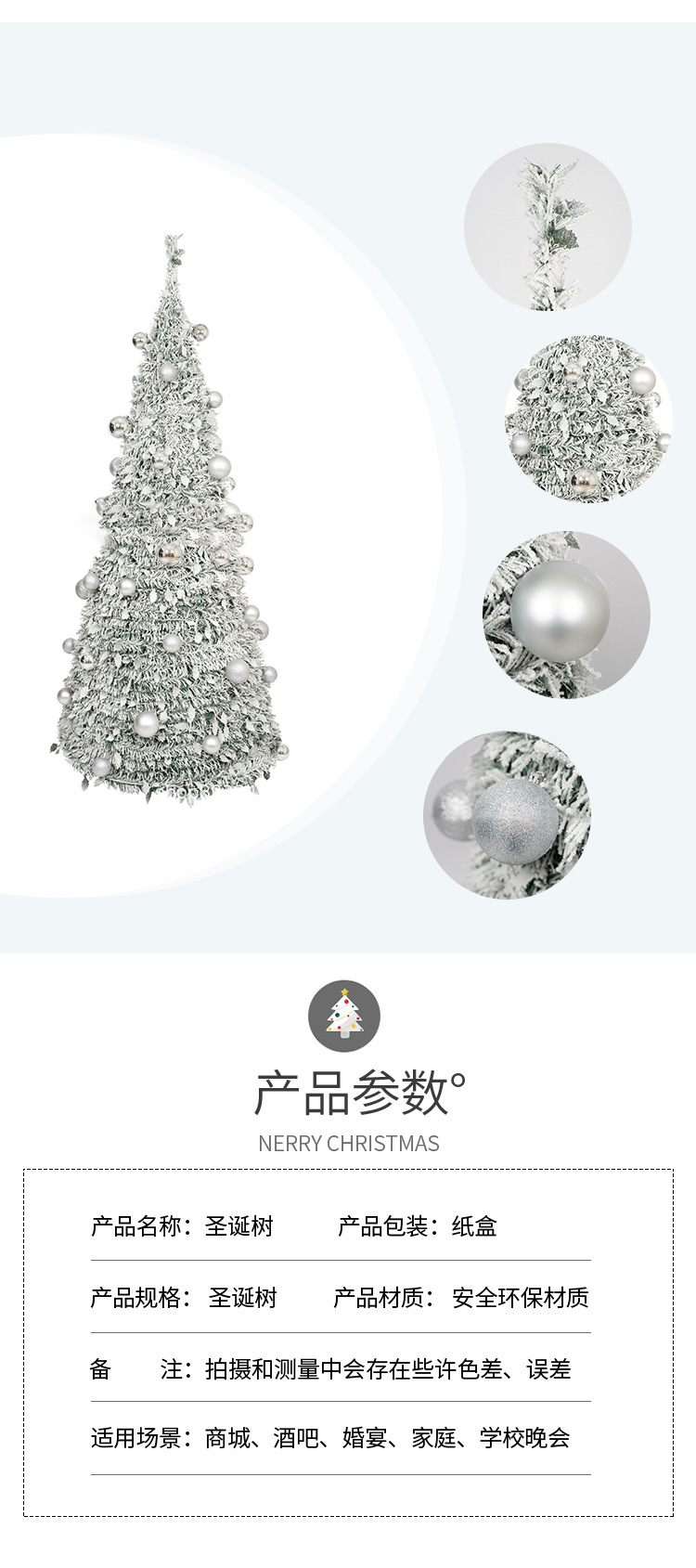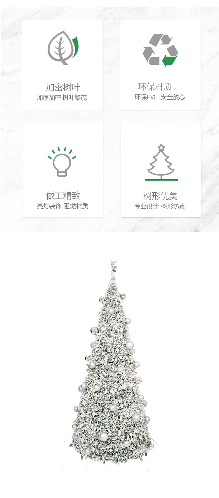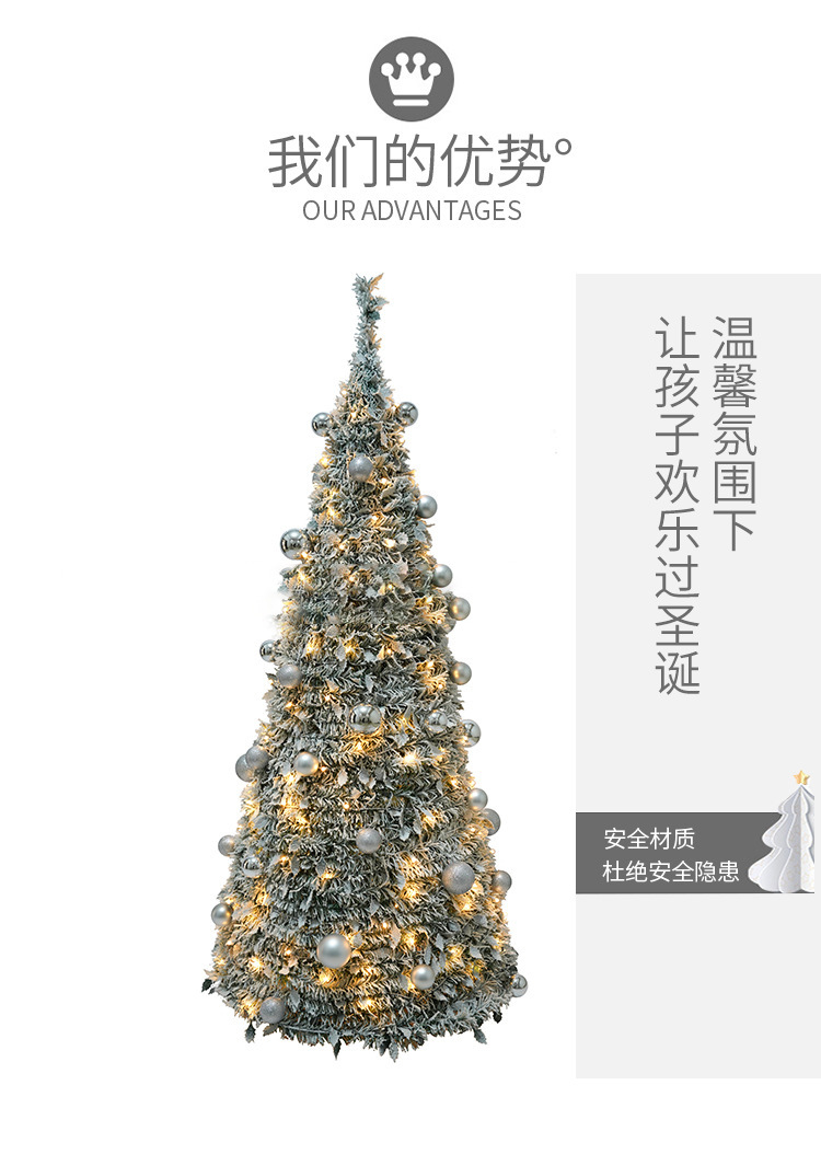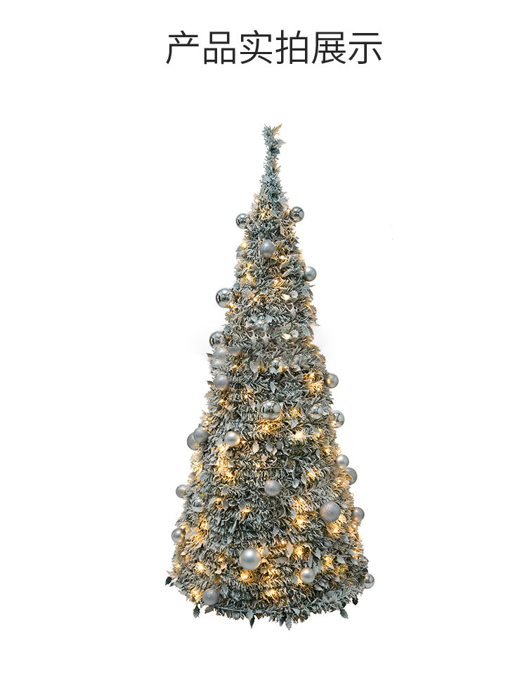 cross-border new arrival 6 feet pop-up pre-lit flocking christmas tree 150 warm white led lights christmas gas decorations
