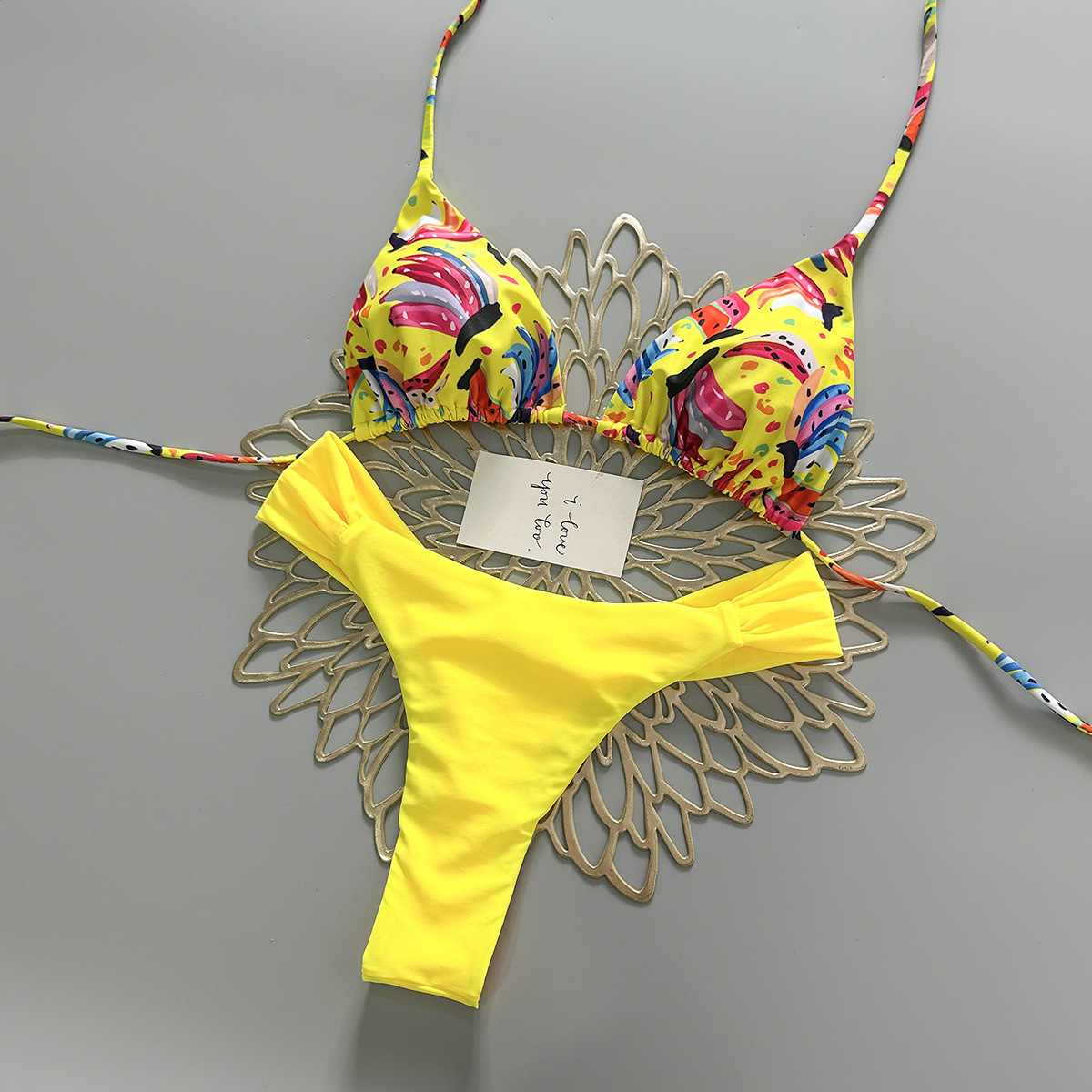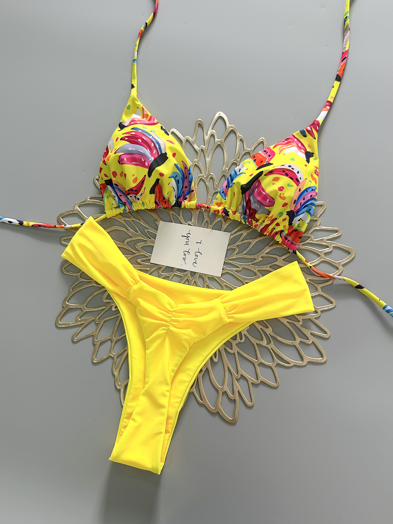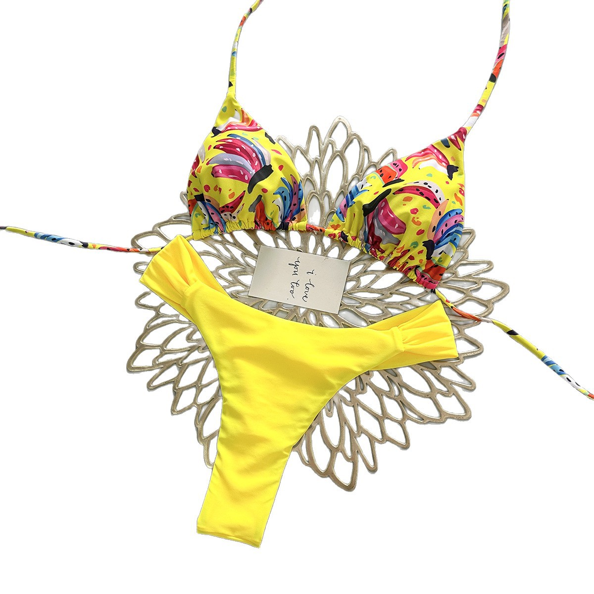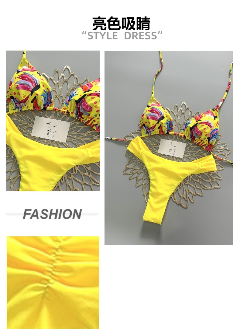 2026 new europe and america cross border split swimsuit braid rope swimwear small fresh low waist pleated pants brazilian bikini
