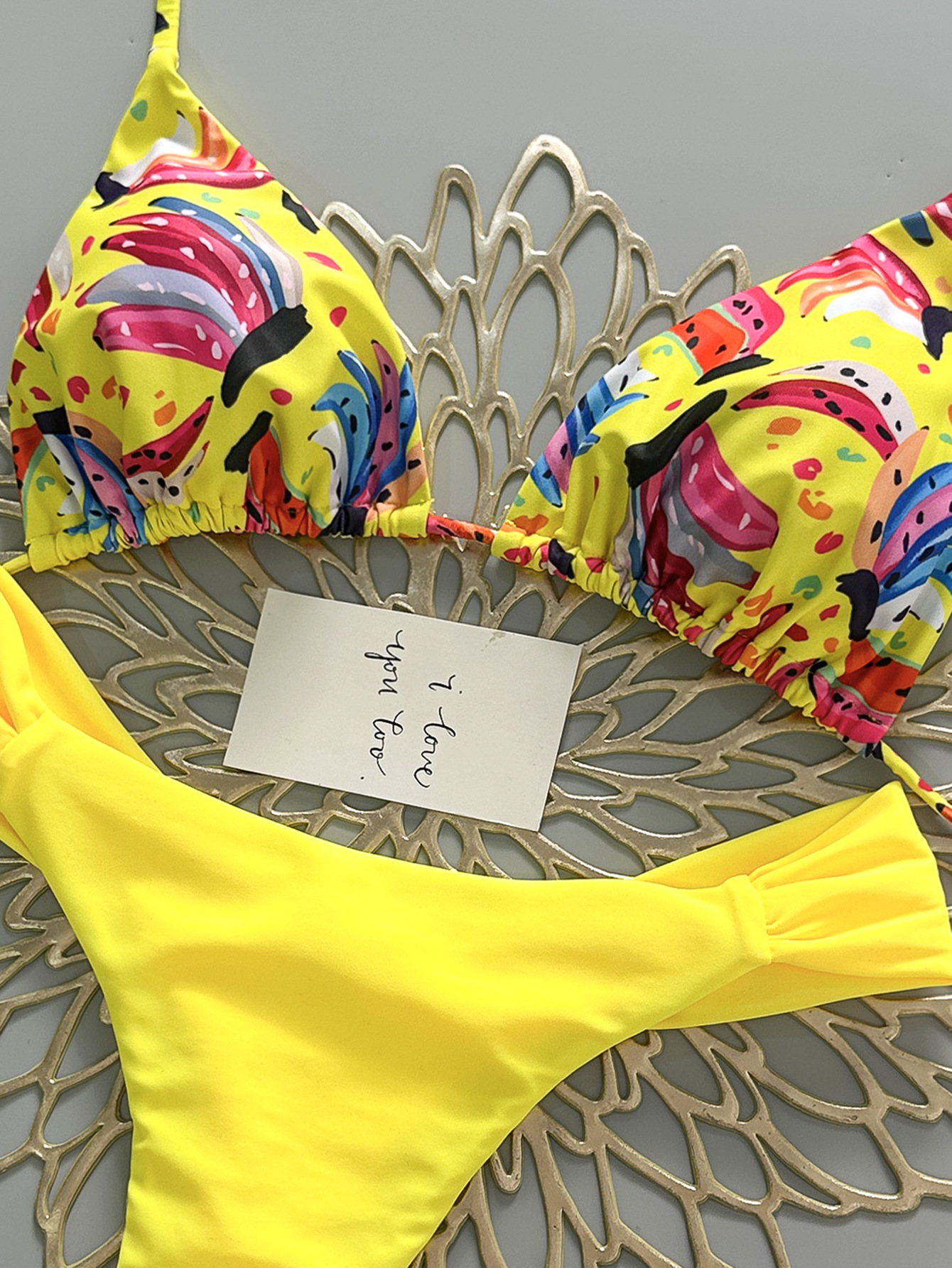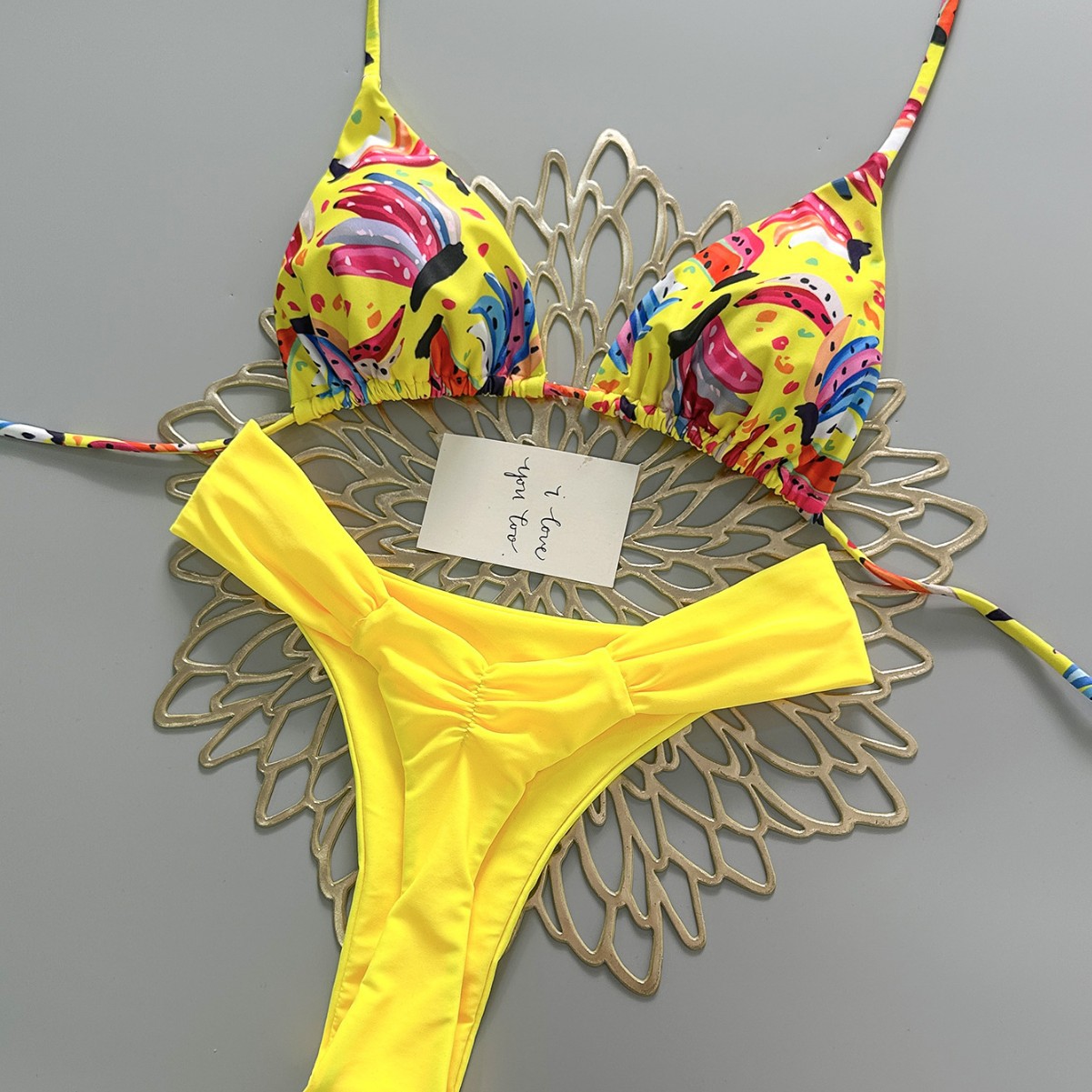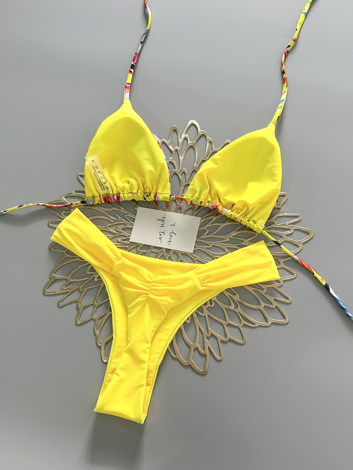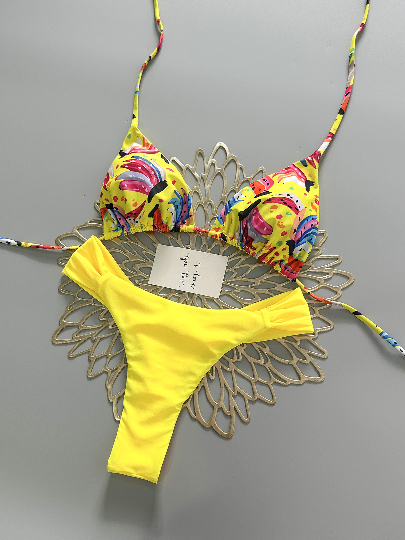 2026 new europe and america cross border split swimsuit braid rope swimwear small fresh low waist pleated pants brazilian bikini