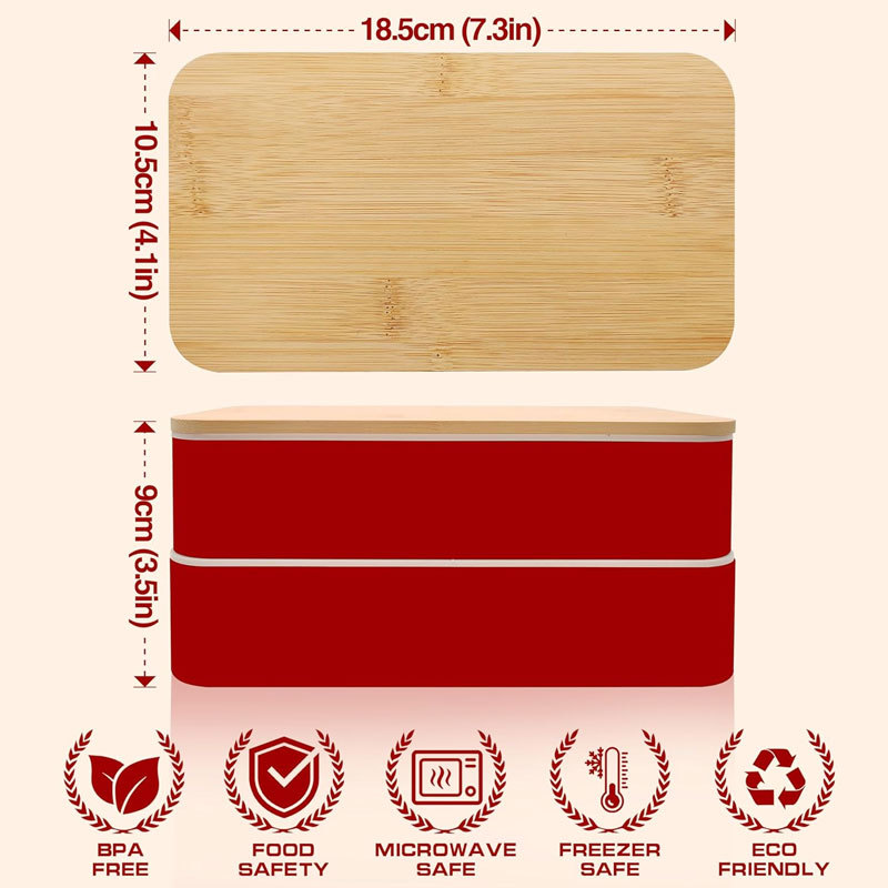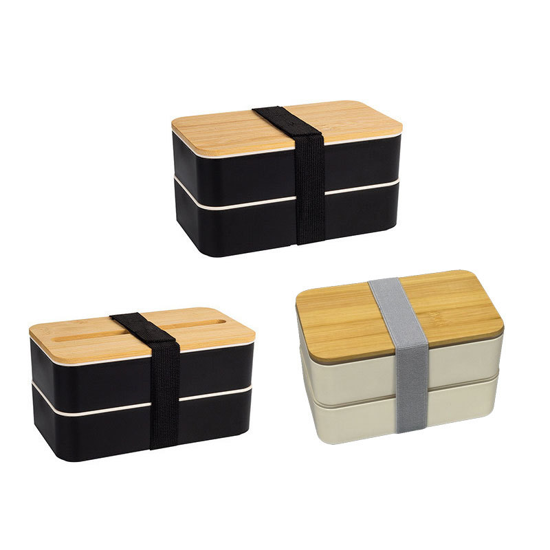 double-layer bamboo cover lunch box black