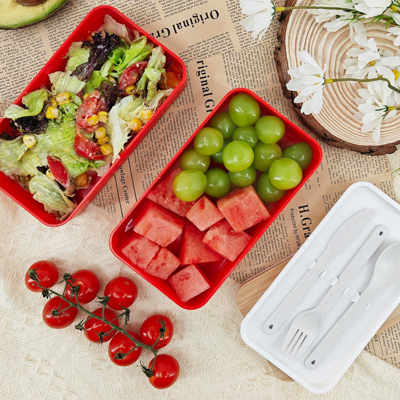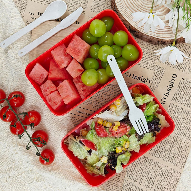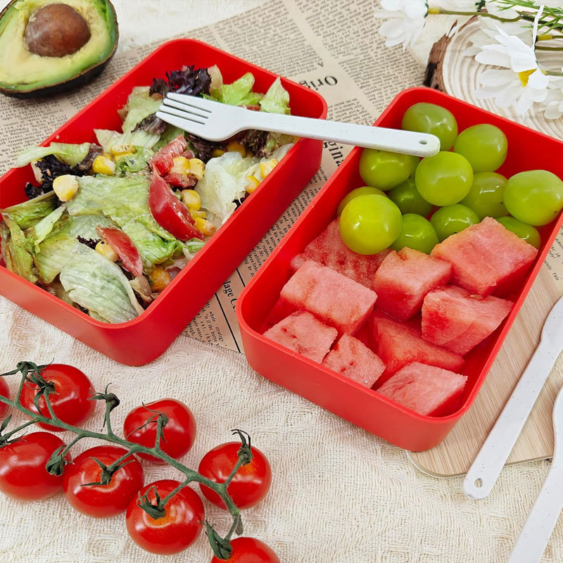 double-layer bamboo cover lunch box white