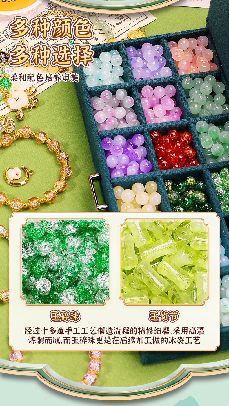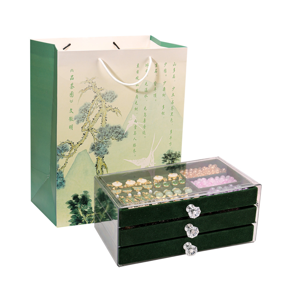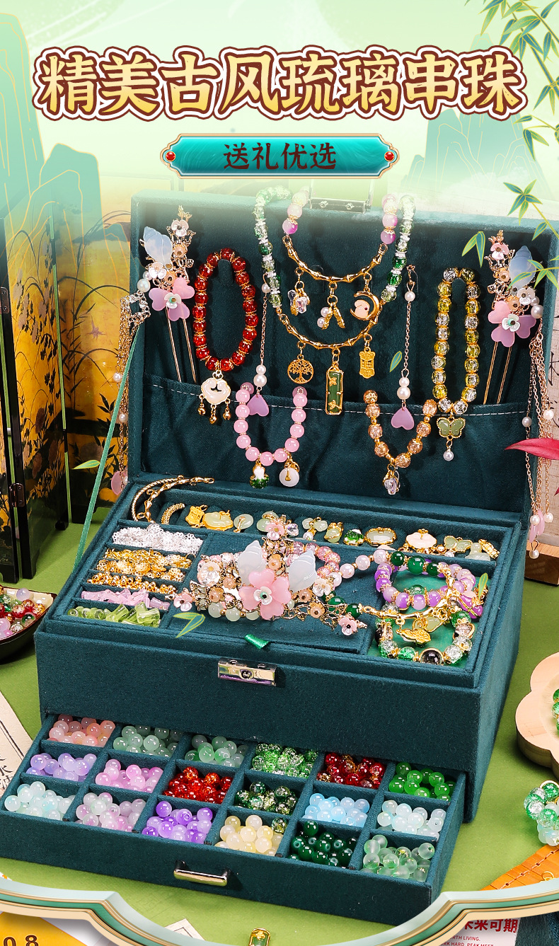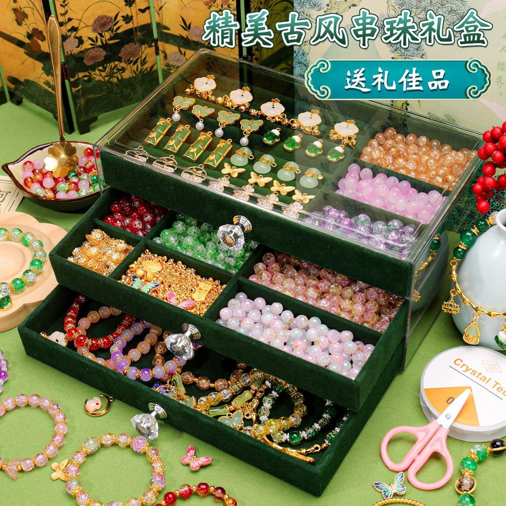 green national style entry edition 12 colors 600 beads + luxury accessory bag + green jewelry box + antique style gift bag