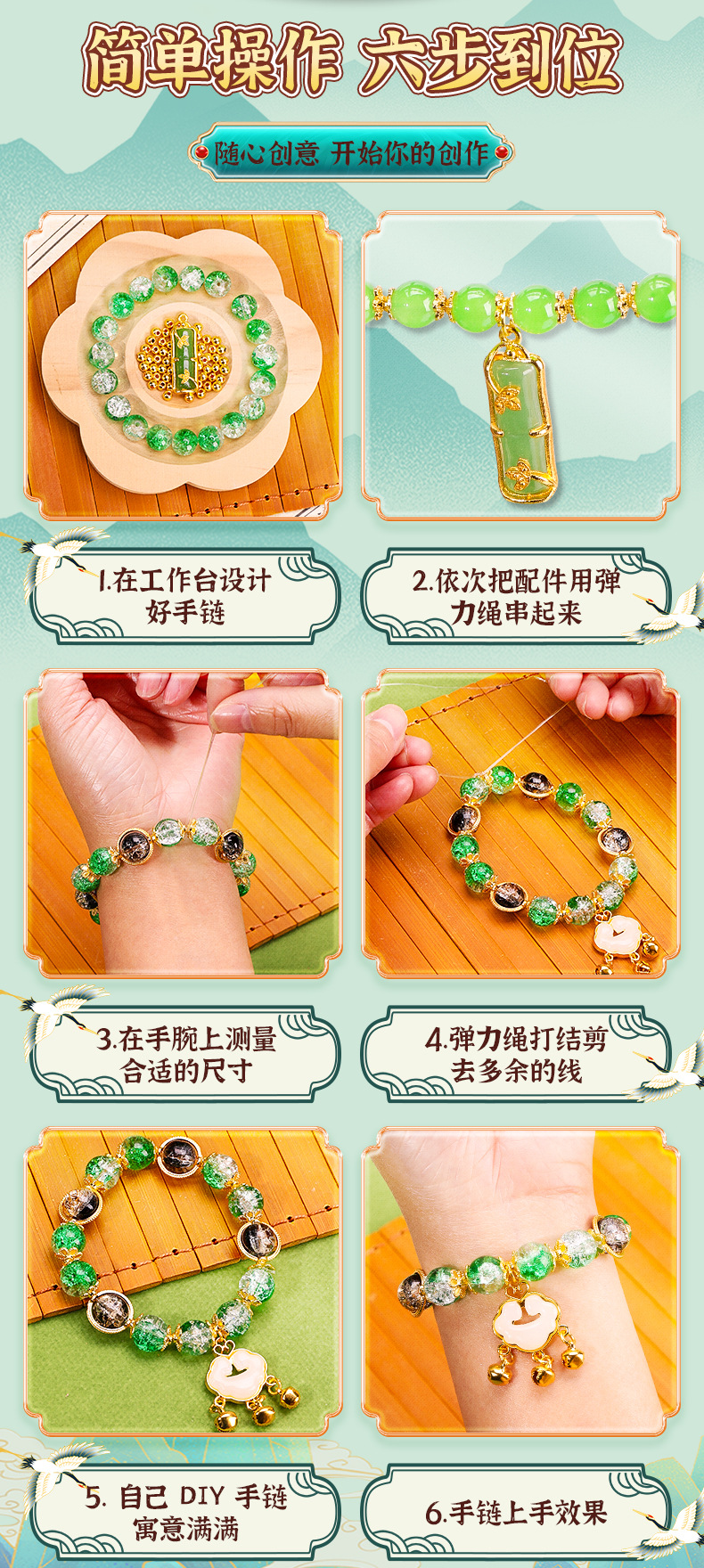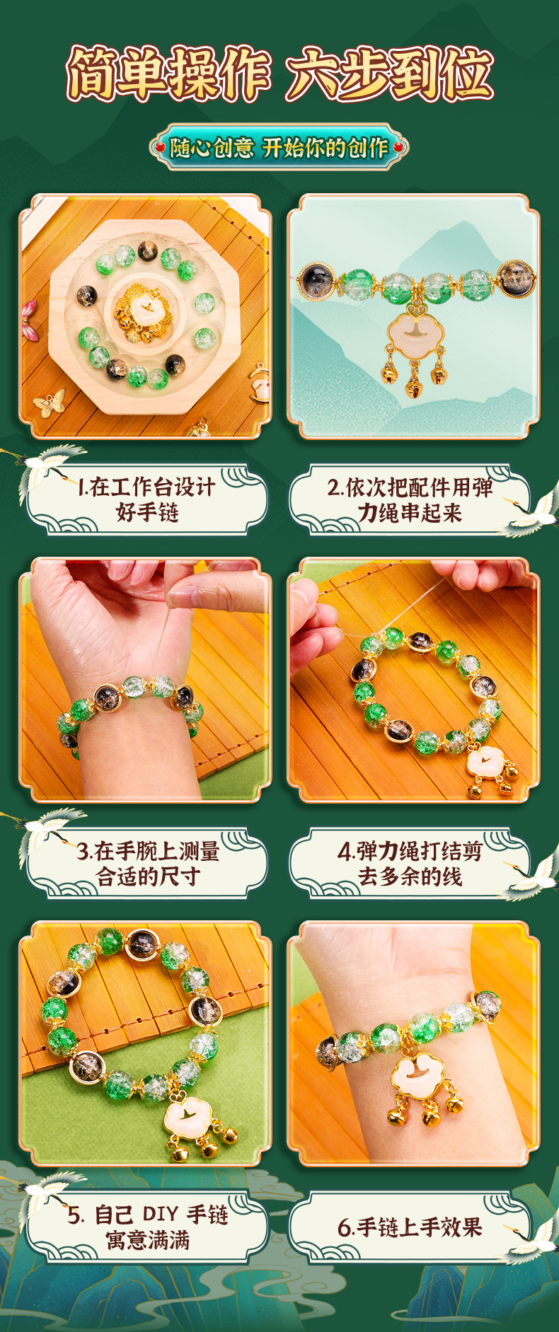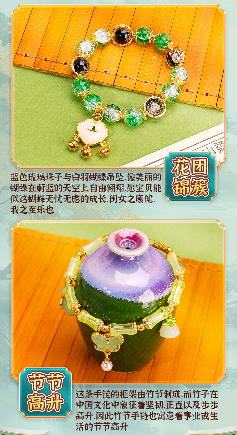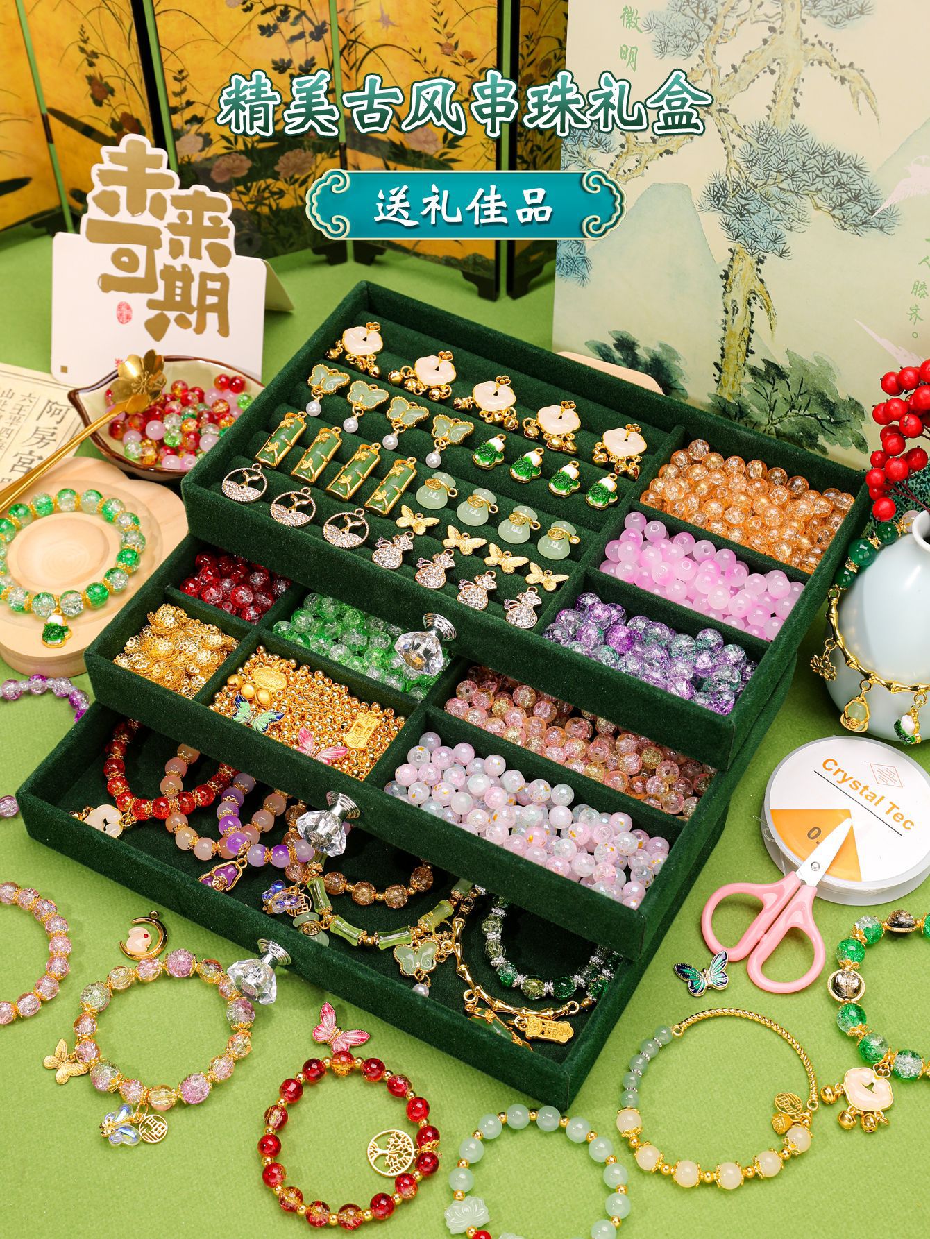 green national style entry edition 12 colors 600 beads + luxury accessory bag + green jewelry box + antique style gift bag