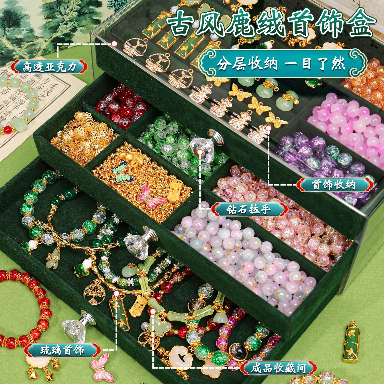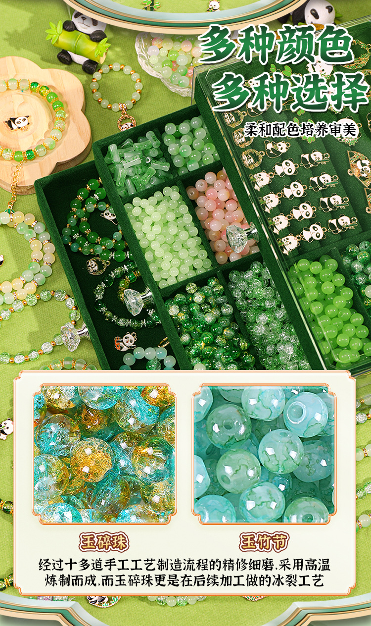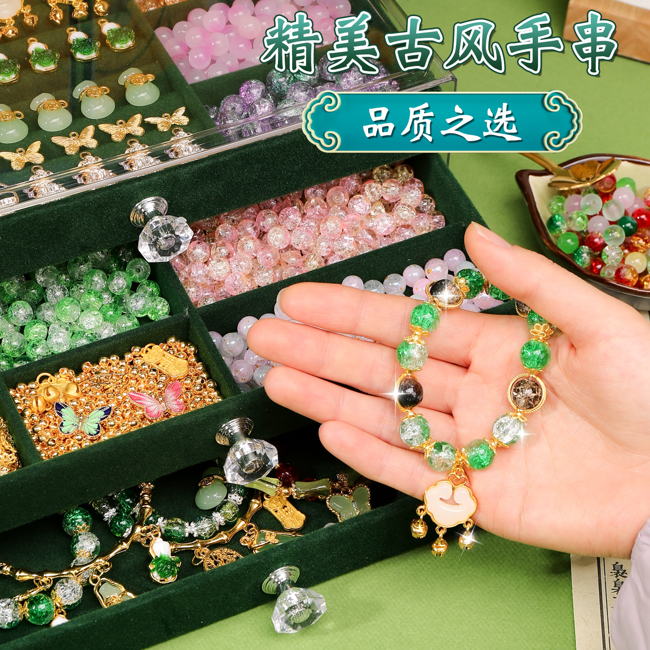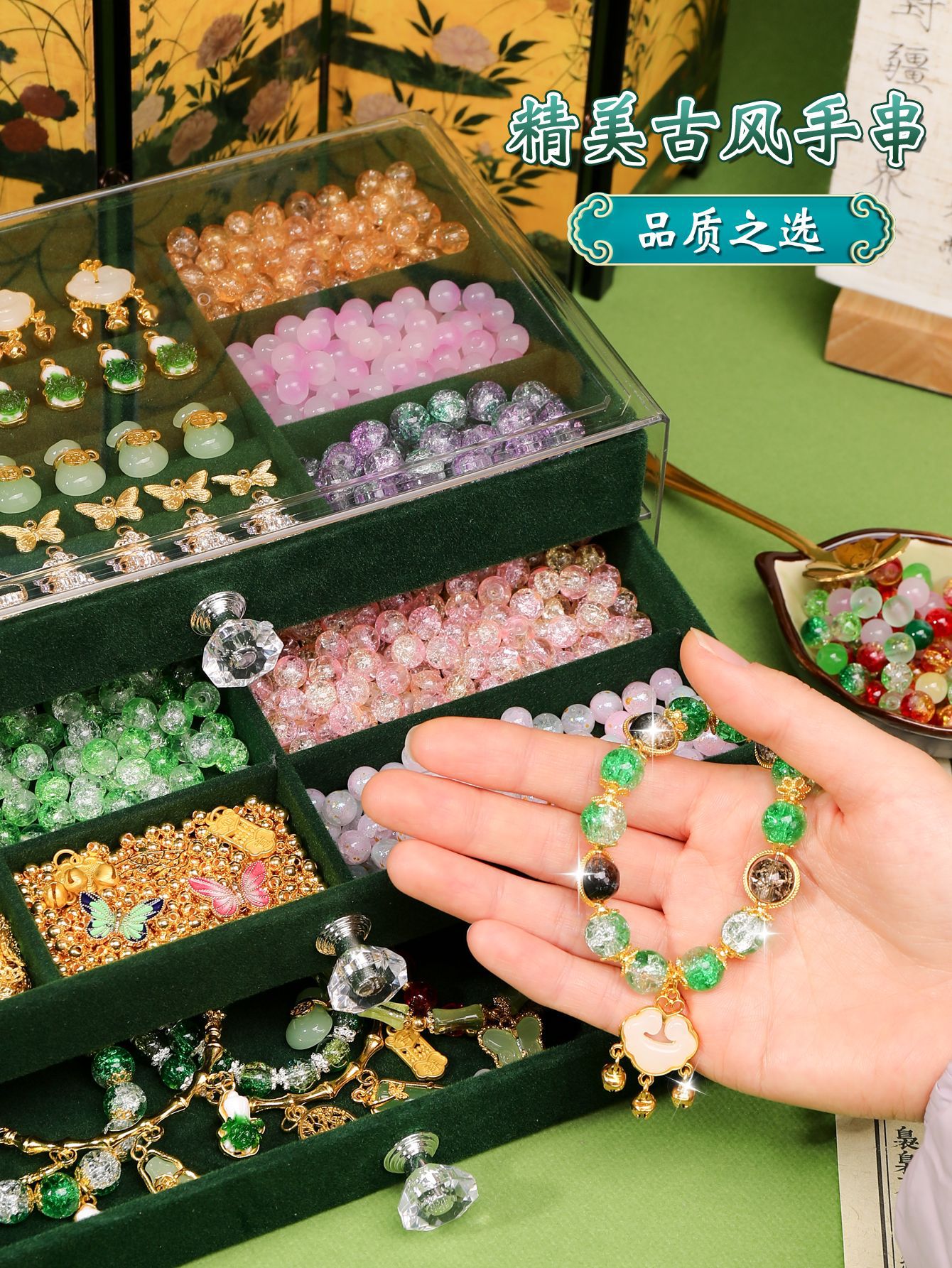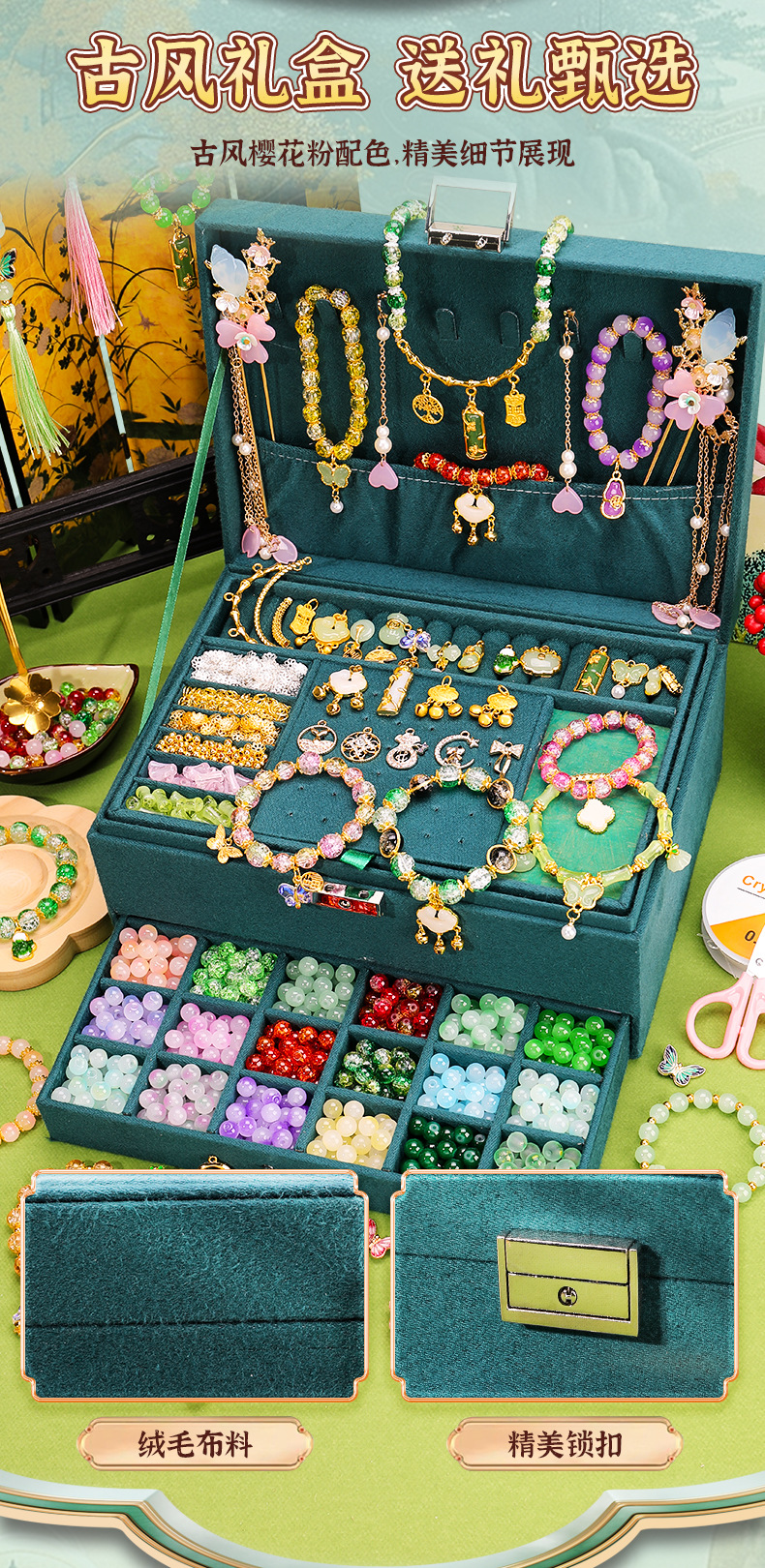 green national style deluxe edition 16 colors 800 beads + luxury accessory bag + green jewelry box + antique style gift bag