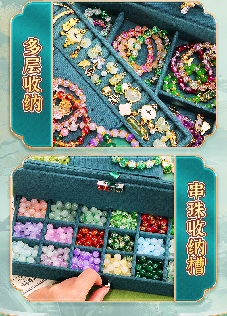 green antique deluxe edition 16-color 800 beads (luxury accessory bag + green jewelry box + antique gift bag + exquisite large gift box)