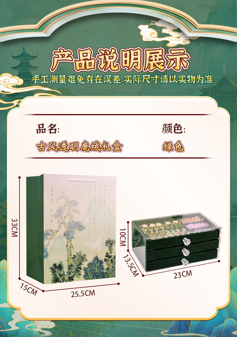 green national style new hand version 6 colors 300 + green jewelry box + exquisite gift bag